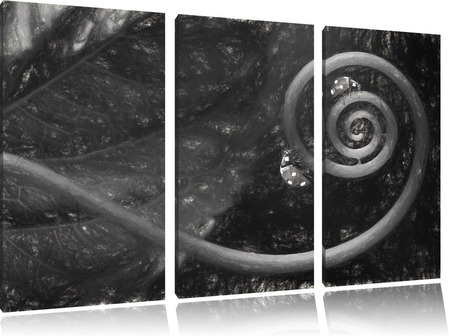 Pixxprint Zwei Marienkäfer auf einen eingedrehten Stängel Kunst Kohle Effekt 3-Teiler Leinwandbild 1