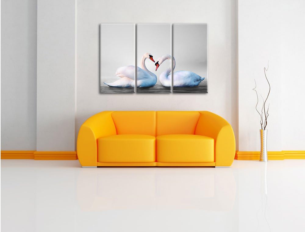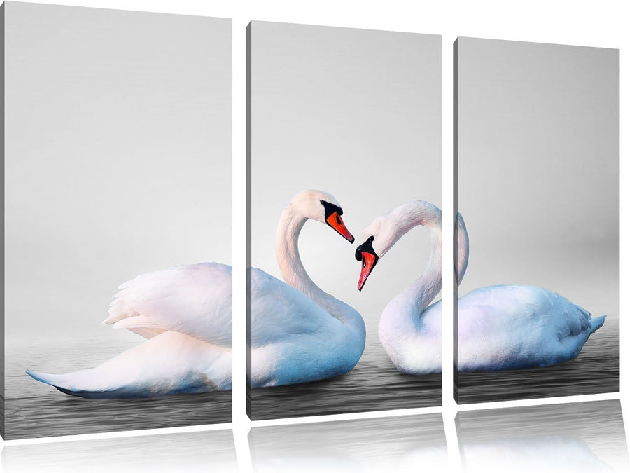 Pixxprint Zwei prächtige Schwäne auf dem Wasser B&W Detail 3-Teiler Leinwandbild 120x80 Bild auf Lei