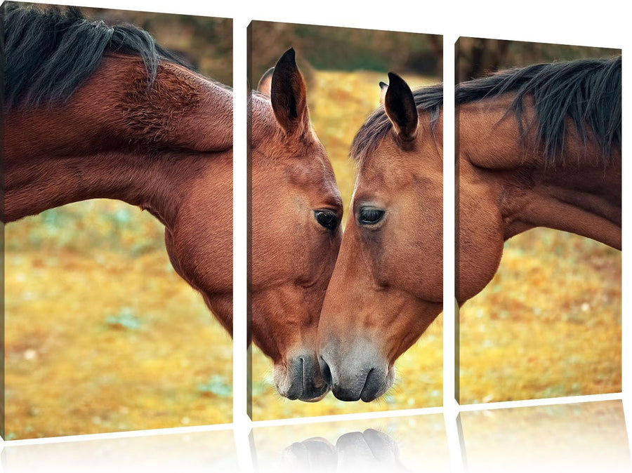 Pixxprint Zwei schmusende Pferde als Leinwandbild/Grösse: 3 Teilig (120x80 cm) cm/Wandbild/Kunstdruc