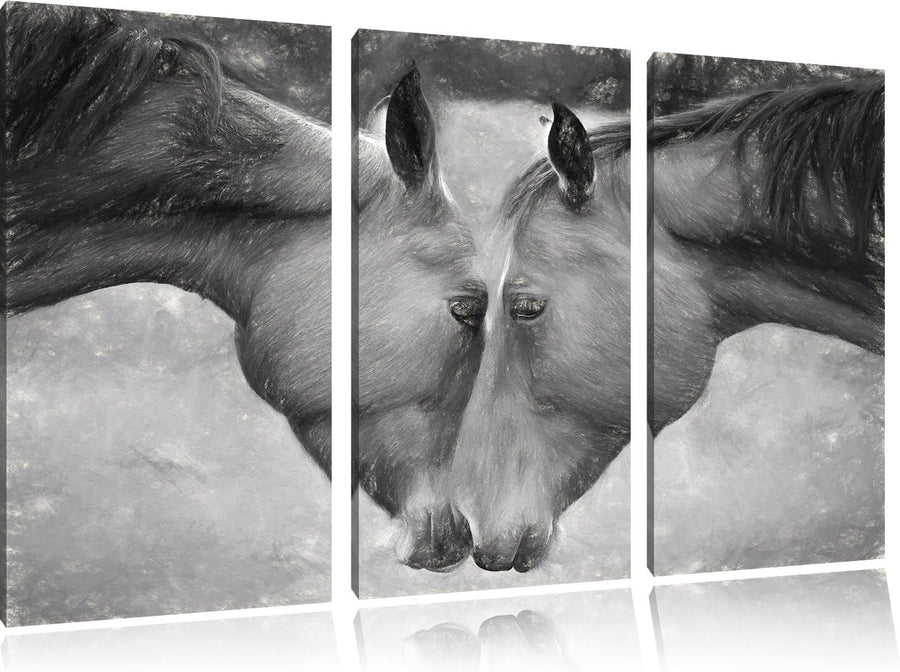 Pixxprint Zwei schmusende Pferde Kunst als Leinwandbild/Grösse: 3 Teilig (120x80) cm/Wandbild/Kunstd