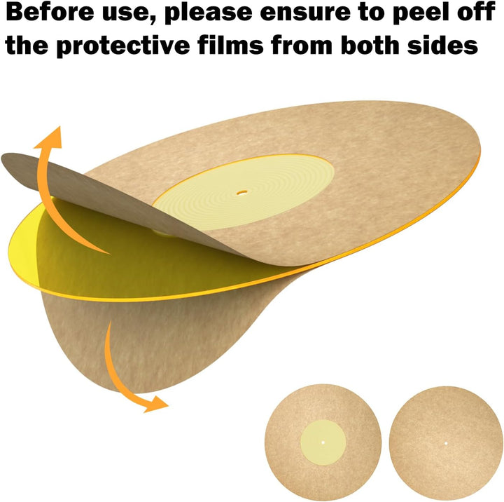 - Plattenspieler-Matte schützt Vinylplatten: Die Acryl-Plattenspieler-Matte kann aufgrund des Materials und der Farbe selbst kleine Staubpartikel aufnehmen und zeigen, daher ist es ratsam, sie vor dem Austausch der Slipmatte abzuwischen.