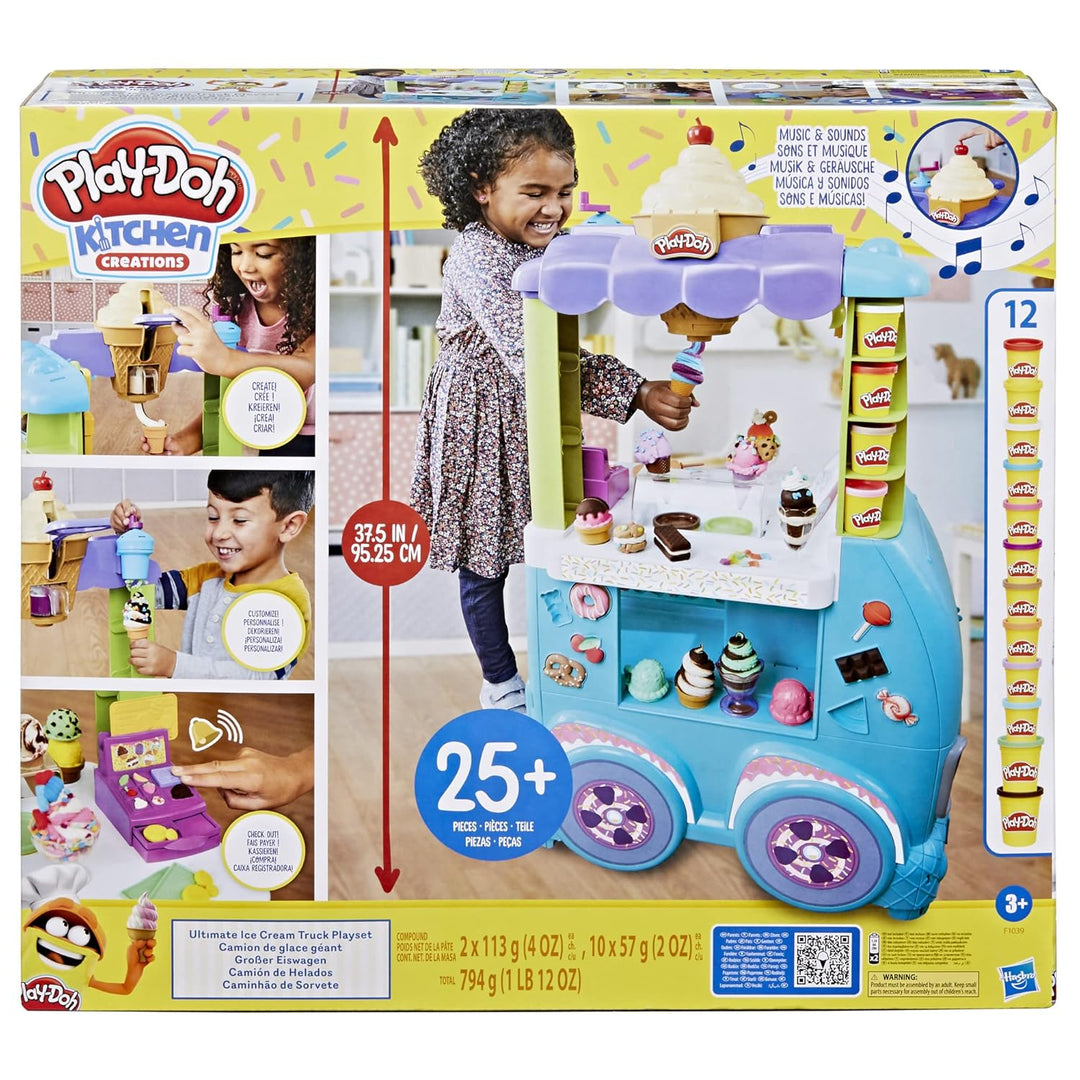 - 27 KNETWERKZEUGE UND 12 FARBEN: Mit Eiswaffeln, Eisbechern, Stempeln, Formen und Play-Doh Knetwerkzeugen wird die Fantasie entfacht und 12 Dosen in klassischen Farben wie Braun, Blau, Grün, Pink und Weiss bringen Farbe ins Spiel (enthält Weizen)