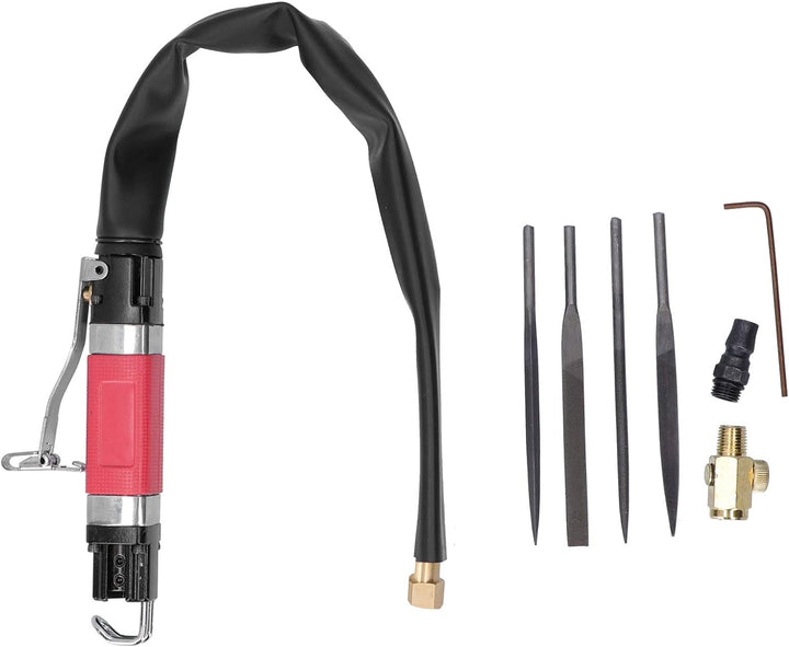 - Endschalldämpfer: Pneumatische Feile hat ein Endschalldämpfer-Design, das mit einem Schlauch (nicht im Lieferumfang enthalten) am Heck angeschlossen werden kann, was sehr umweltfreundlich ist.