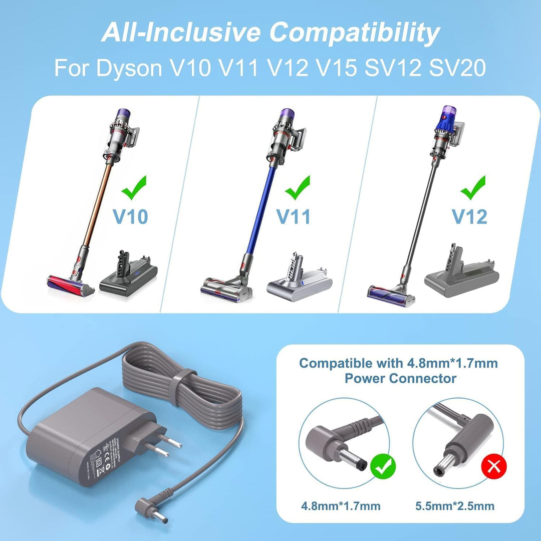 - Für Dyson V12 V15 Series Staubsauger, Dyson V12 Detect Slim Total Clean Extra, Fluffy/Absolute Extra und Dyson V15 Detect Total Clean Extra, Absolute Extra Cordless Vacuum Ersatz-Netzkabeladapter