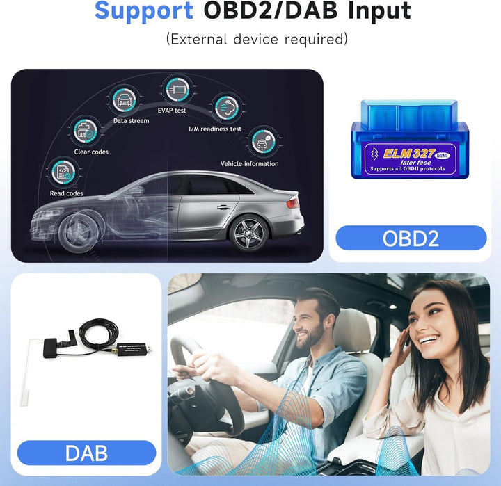 - 【Weitere Funktionen】 Inklusive AHD-Rückfahrkamera. Hi-Fi-Musik. Multi-EQ-Einstellung. Unterstützt Video-/Audioeingang/-ausgang, Subwoofer-Ausgang. Unterstützt externen USB-Dongle (nicht im Lieferumfang enthalten): DAB+, DVR, OBDII, Carplay usw.