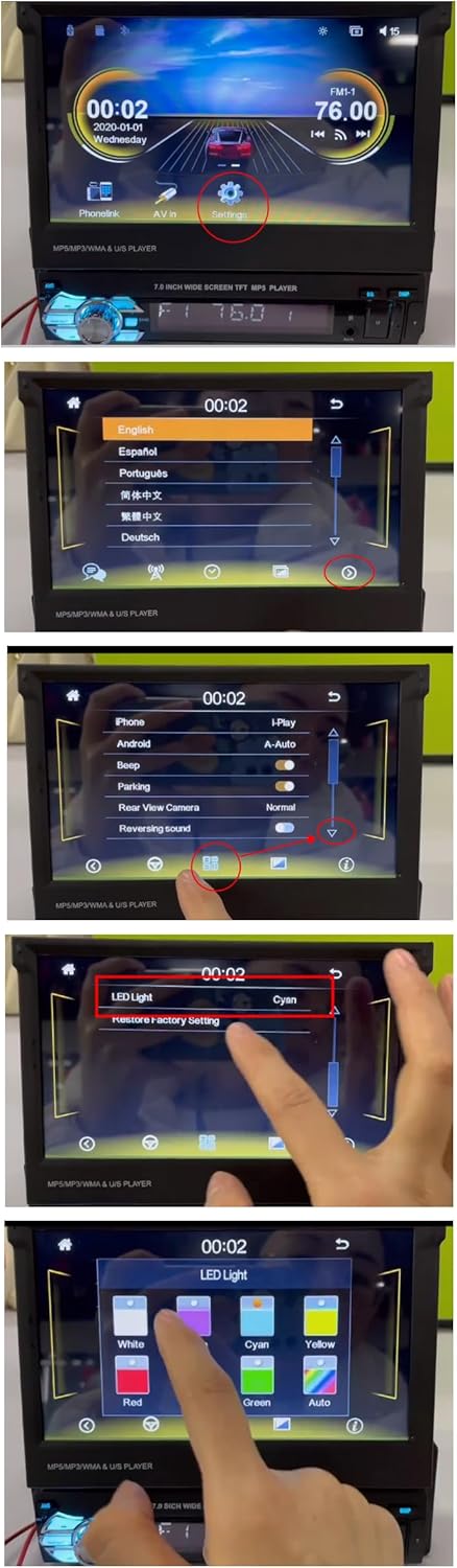 - 🚗【Weitere Funktionen】- Unterstützt SD-Karte, USB-Wiedergabe, AUX-Musikwiedergabe, Sprachumschaltung, dualer USB2.0-Adaptereingang, RCA-Audio- und Videowiedergabe, Zeiteinstellung, Schnittstellenthemen, Hintergrundbildumschaltung usw.