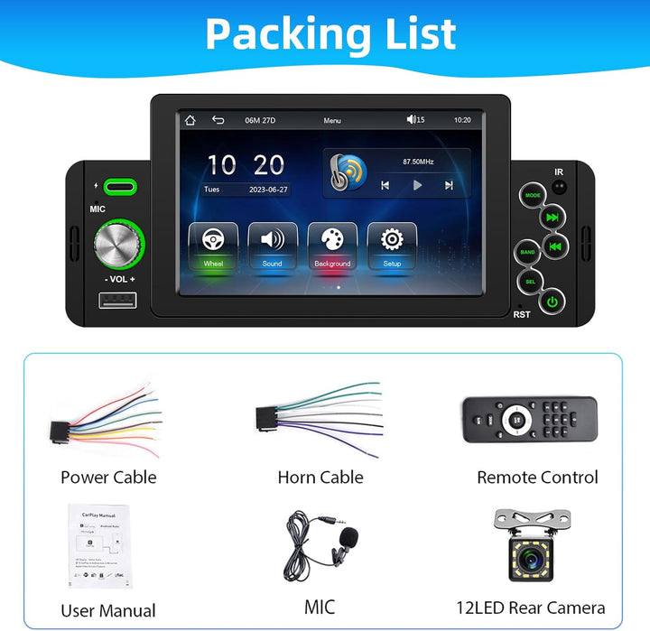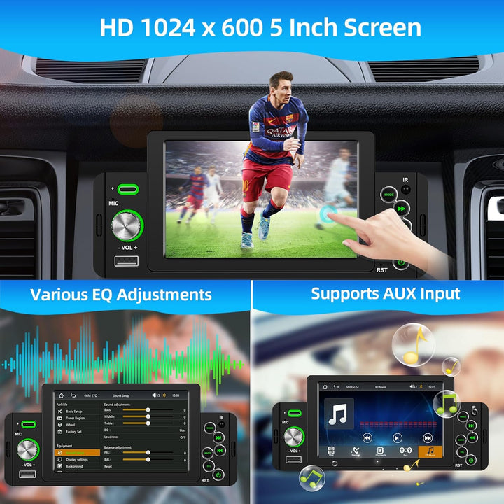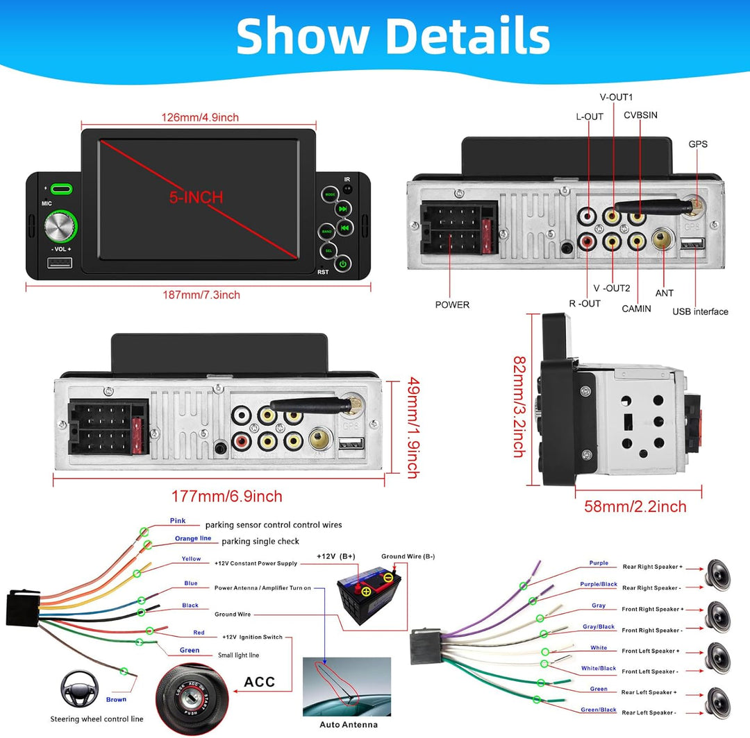 - 【5 Zoll Berührungssensitiver Bildschirm】- Kapazitiver 5 Zoll Touchscreen, Installationsgrösse: 177 (L) x 58 (B) x 50 (H) mm. Breiterem Betrachtungswinkel und breiterem Farbraum, Unterstützung für schnelles Aufladen von Mobiltelefonen, TF /