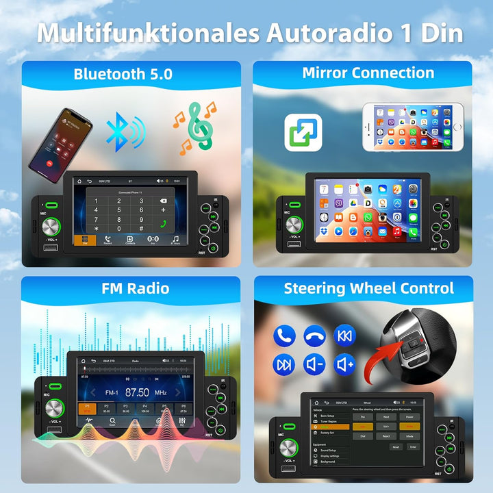 - 【UKW-Radio/Schnellladung】 - Unterstützt UKW Radio mit drei Signalmodi, um Kanalsendungen zu hören, Echtzeit Strassenbedingungen, Wetterbedingungen, Reisemusik und andere Radioprogramme während der Fahrt zu hören; Das 1-DIN Autoradio verfügt
