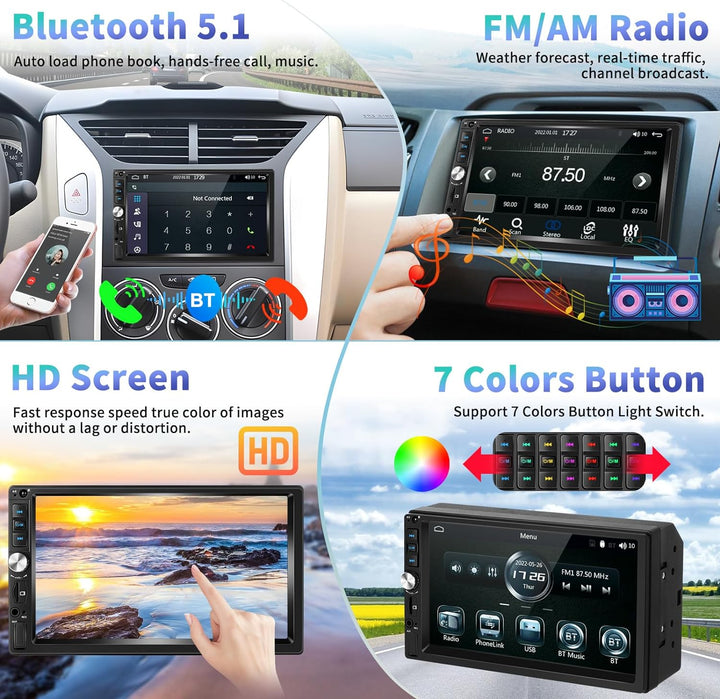 - 🚗【Bluetooth 5.1 und AM/FM Radio】- Unterstützt Bluetooth A2DP-Freisprechanrufe, Musikwiedergabe und automatisches Laden des Telefonbuchs. Hören Sie Wettervorhersagen, Echtzeit-Strassenbedingungen, verschiedene Kanalsendungen durch automatische