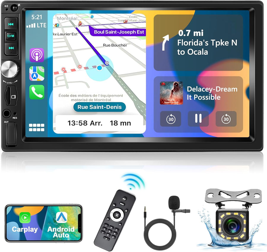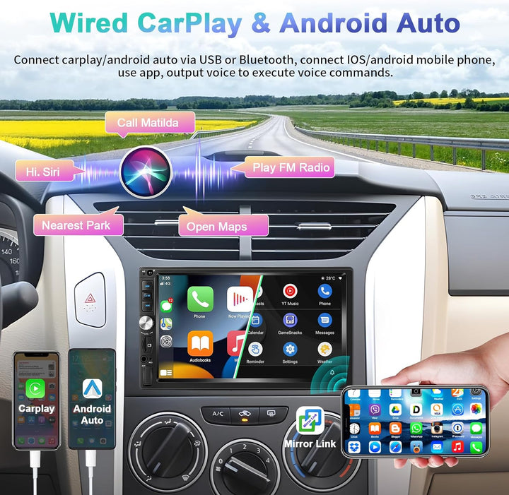- 🚗【Kompatibel mit Apple Carplay/Android Auto】- Autoradio unterstützt Carplay und Android Auto, verbindet sich mit dem Mobiltelefon, verwendet Sprachbefehle, greift auf mobile Anwendungen, Adressbuch, E-Mail, Benachrichtigungen, Kartennavigation,