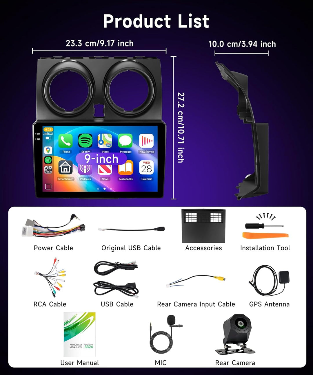 - 【Autoradio Android 10 Doppel Din für Nissan Qashqai J10 2006-2016】9 Zoll grossem Bildschirm, geeignet für Nissan Qashqai J10 2006-2016, der Speicher ist 2+32. Hochempfindlicher Touchscreen, hohe Auflösung von 1024*600 und hohe Transparenz 2.5D gebogene Kante, kratzfester kapazitiver Touchscreen aus gehärtetem Glas, kann HD-Filme, TikTok und YouTube ansehen. Es kann mit der Rückfahrkamera verbunden werden, um das hintere Bild in hoher Auflösung anzuzeigen.