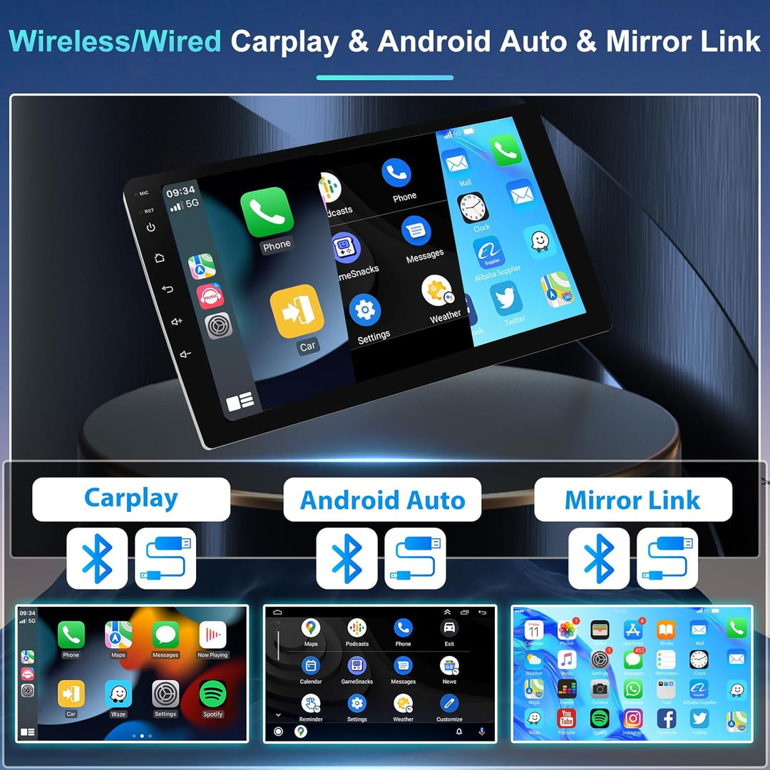 - ►[Wireless Carplay & Android Auto & Mirror Link] Unterstützung von drahtlosem und kabelgebundenem Carplay und Android Auto, einfache Verbindung und grosses Vergnügen - Zugriff auf die Funktionen Ihres Telefons, einschliesslich Musik, Karte, Anrufe,