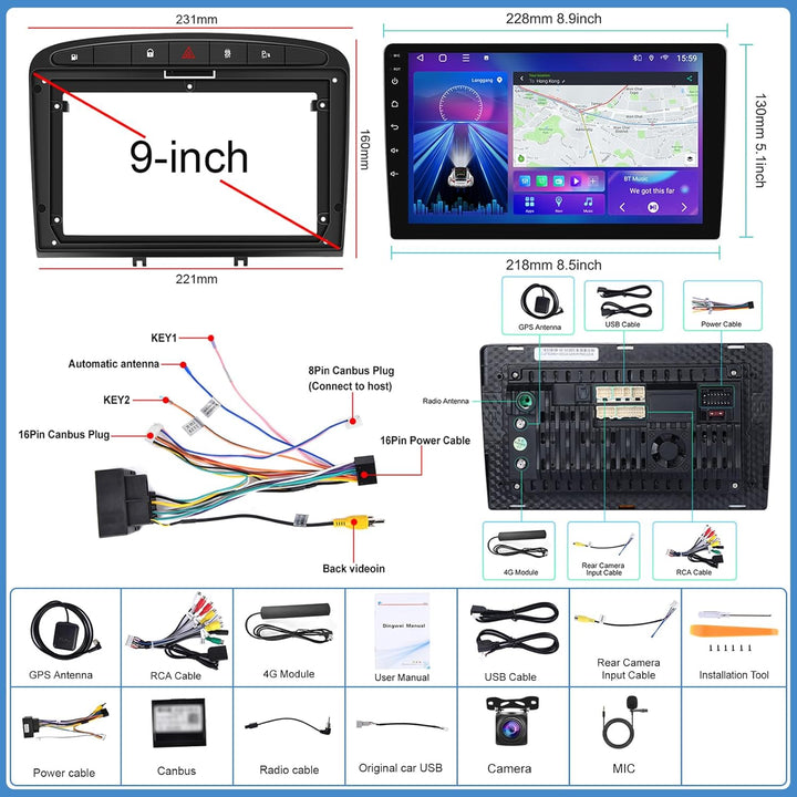 - ►[8 Core Android Autoradio für Peugeot 308/408] Speziell für Peugeot 308/408 2007-2015, ausgestattet mit intelligentem Android-System, 8-Core-Prozessor, 4GB RAM und 64GB ROM, 9 Zoll Touchscreen, wird dieses Autoradio definitiv eine bessere Fahrt