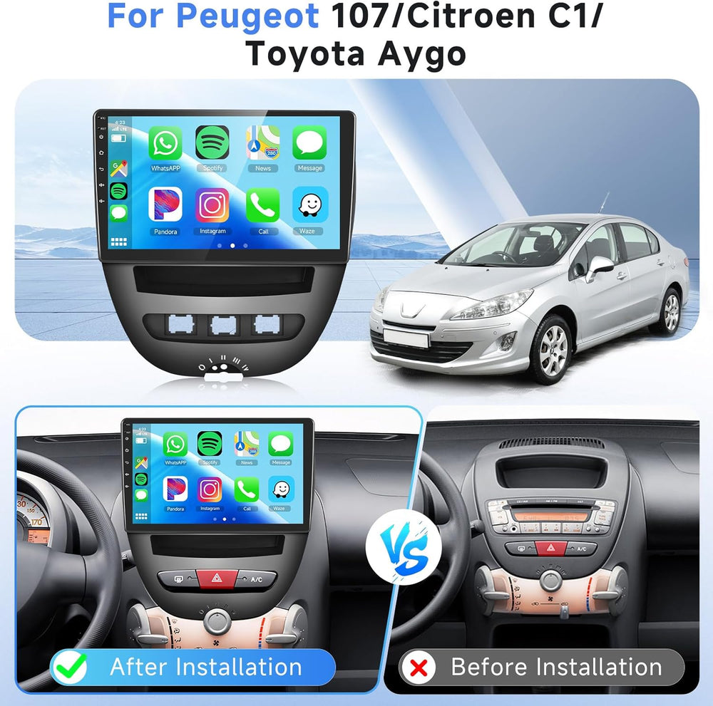 - 【Autoradio mit grossem Bildschirm, speziell für Toyota Aygo/Peugeot 107/Citroen C1(2005-2014)】⚠HINWEIS: Passen Sie NUR auf die gleiche Mittelkonsolenform wie auf dem Bild. Abmessungen: 260 (Breite oben) x 245 (Breite unten) x 265 (Höhe) mm.