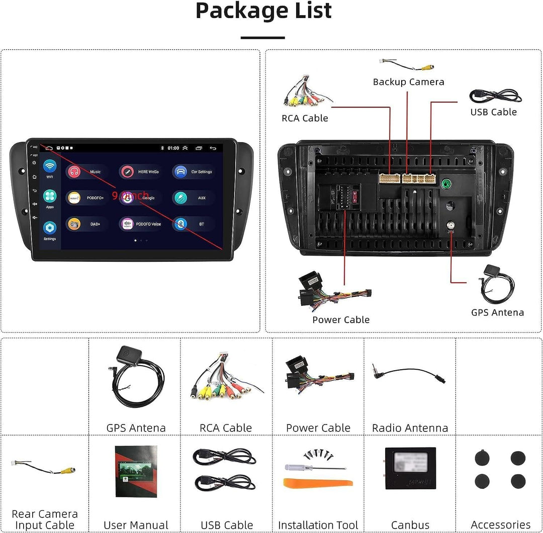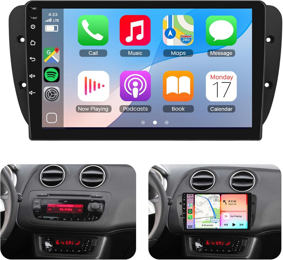 - 【Autoradio mit grossem Bildschirm, speziell für Seat Ibiza 2009-2013】⚠HINWEIS: Passen Sie NUR auf die gleiche Mittelkonsolenform wie auf dem Bild. Abmessungen: 270 (Breite oben) x 245 (Breite unten) x 135 (Höhe) mm. 9-Zoll-Touchscreen mit