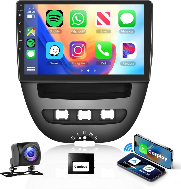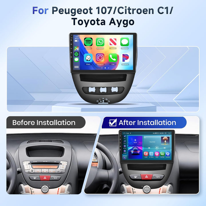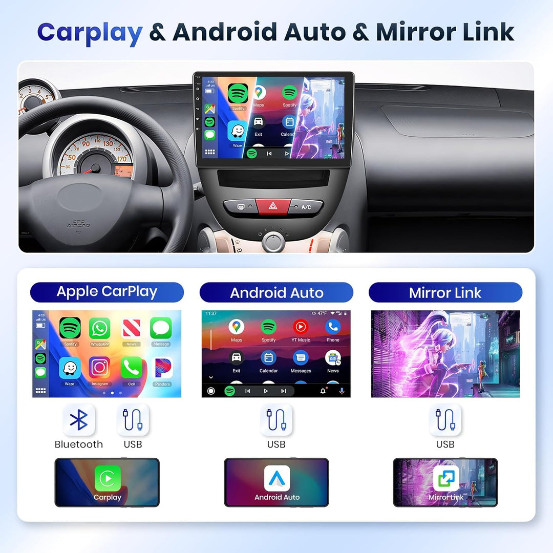 Podofo Carplay Autoradio für Peugeot 107/Citroen C1/Toyota Aygo, 10.1“ Touchscreen Autoradio 2G+64G