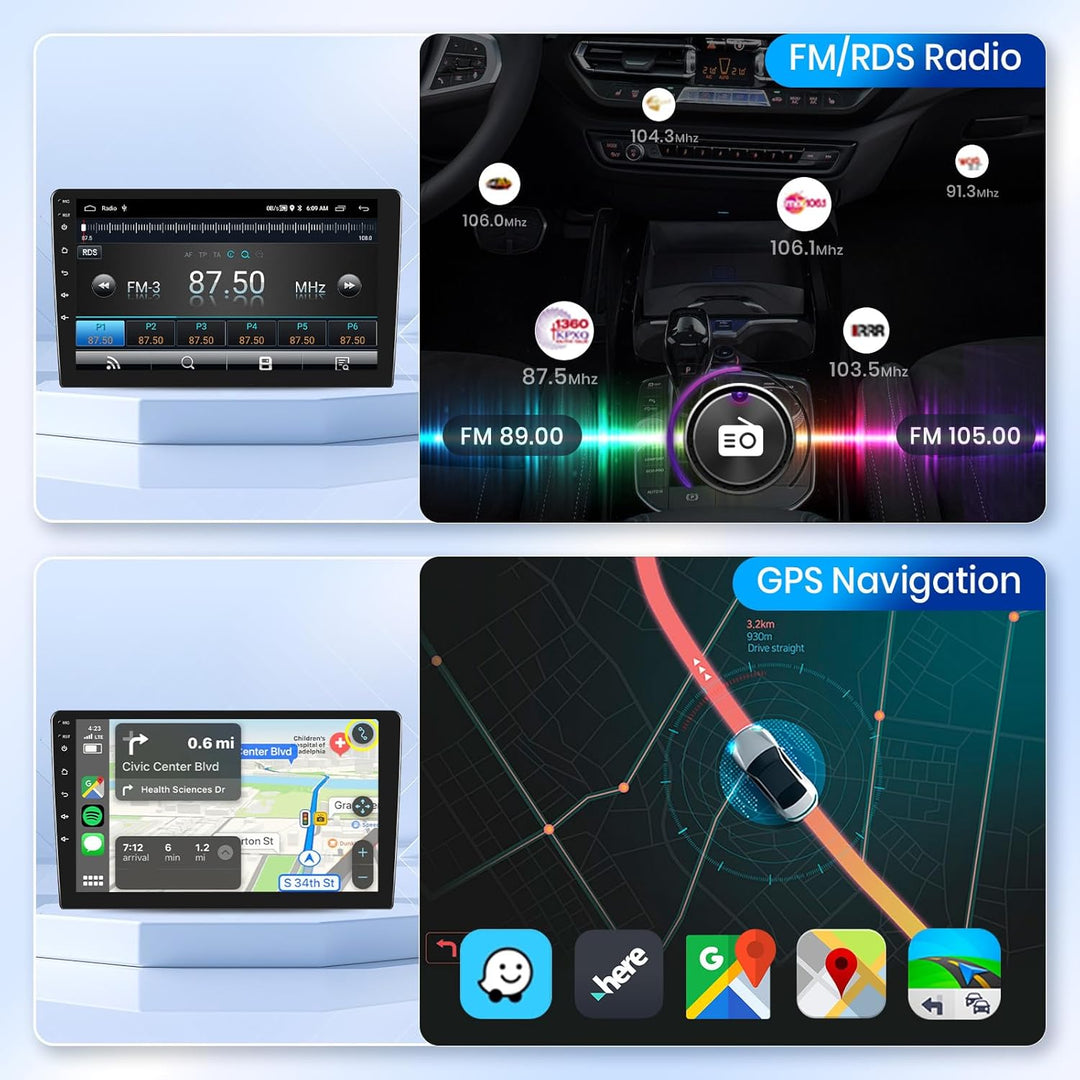• ►【GPS Navigation & FM/RDS Radio】Ausgestattet mit GPS-Modul, können Sie Online/Offline-Karten über die vorinstallierte Karten-App "HereWego" nutzen. Sie können auch andere Karten-Apps verwenden, die Sie bevorzugen. Mit FM/RDS-Radio,
