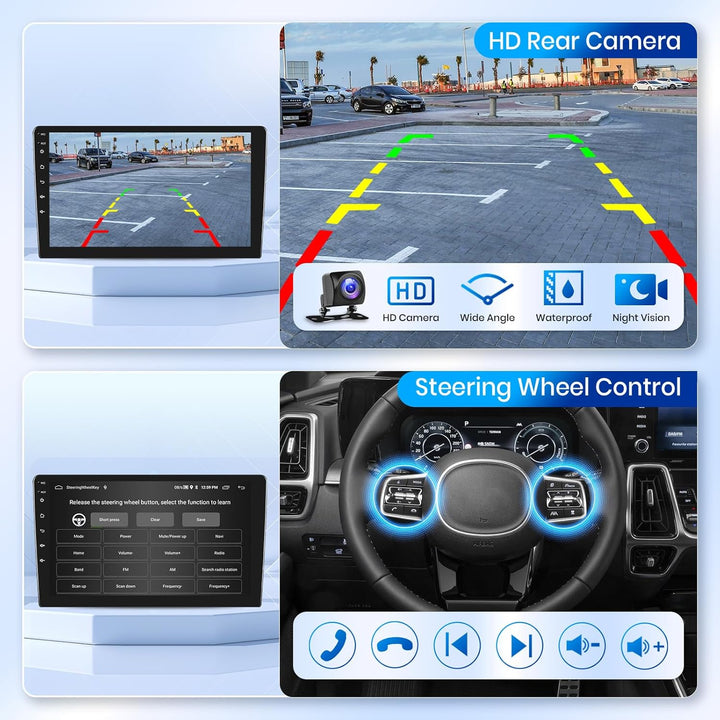 • ►【HD Rückseitenkamera & andere Funktionen】Ausgestattet mit einer HD Rückseitenkamera (Strom und RCA-Kabel enthalten), 1280 x 720 Pixel, wasserdicht und Nachtsicht. Weitere Funktionen: Lenkradsteuerung, HiFi-Sound, Split-Screen und 2