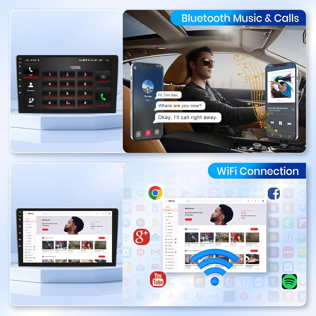 • ►【Built-in Bluetooth & WiFi Connection】Mit integriertem Bluetooth können Sie Ihr Telefon anschliessen, um Bluetooth-Musik, Freisprechanrufe und Sprachsteuerung zu geniessen. Mit der WiFi-Verbindung können Sie das Autoradio mit dem WiFi oder