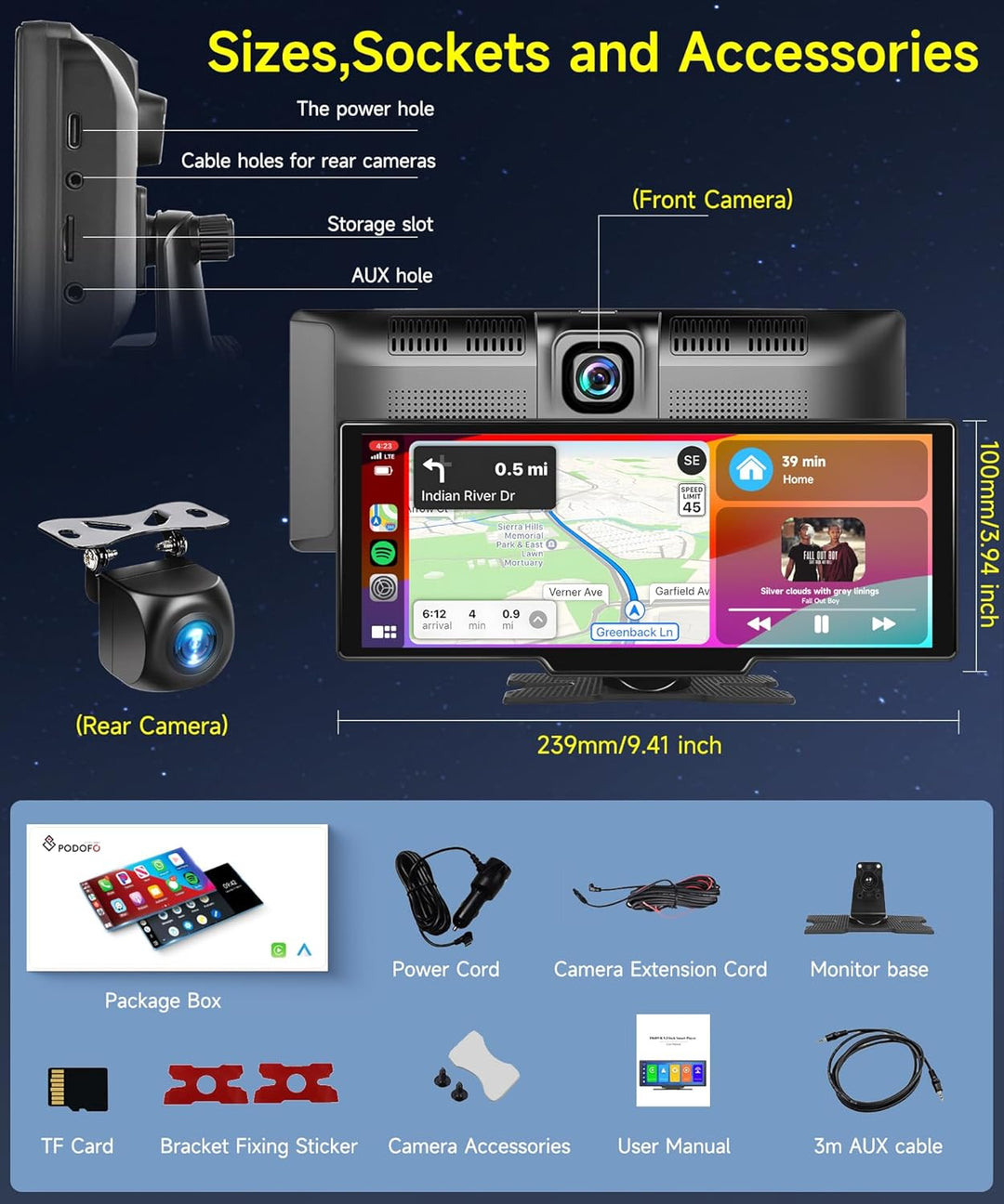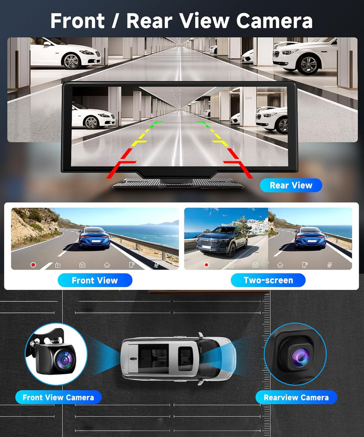 - 🚗【Carplay mit Rückfahrkamera und Dashcam Vorne】 Die Vollfarblinse ermöglicht es Ihnen, echte Farben in der Nacht zu sehen und ein klareres Bild hinter dem Auto zu bekommen. Sowohl die vordere als auch die hintere Kamera unterstützen die