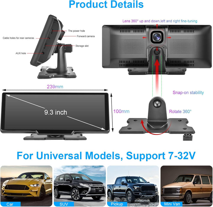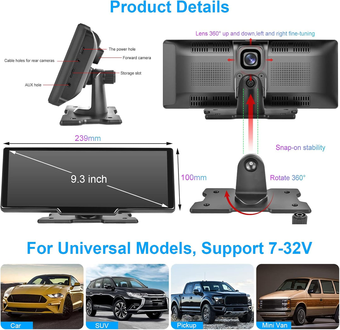 - [Grösserer Bildschirm] - Der hochauflösende 9,3-Zoll Touchscreen ermöglicht es Ihnen, Bildschirminhalte mit einem grösseren Betrachtungswinkel anzuzeigen. Das rechteckige Bildschirmdesign kann die Okklusion der Sichtlinie besser reduzieren. Die Form