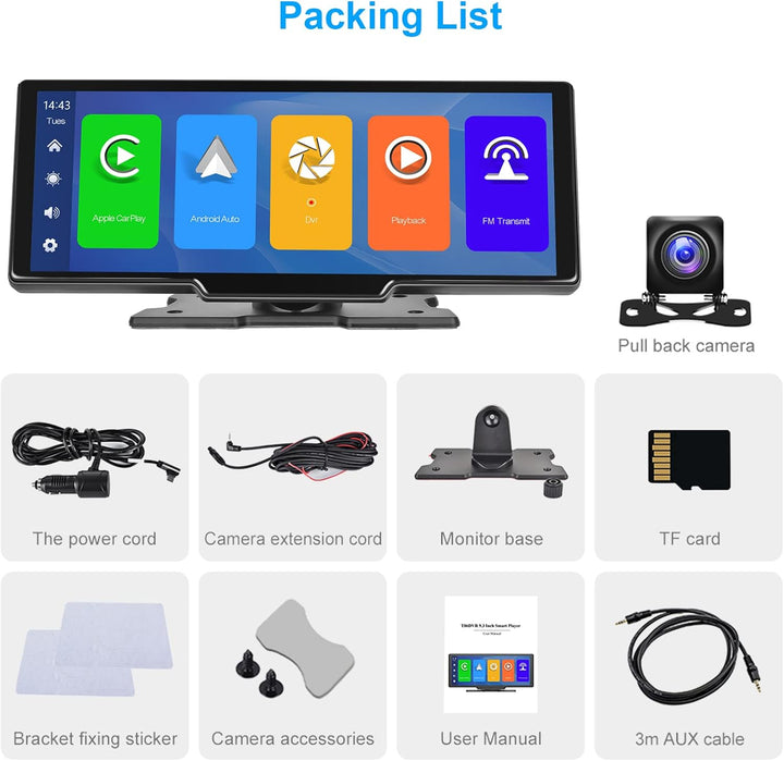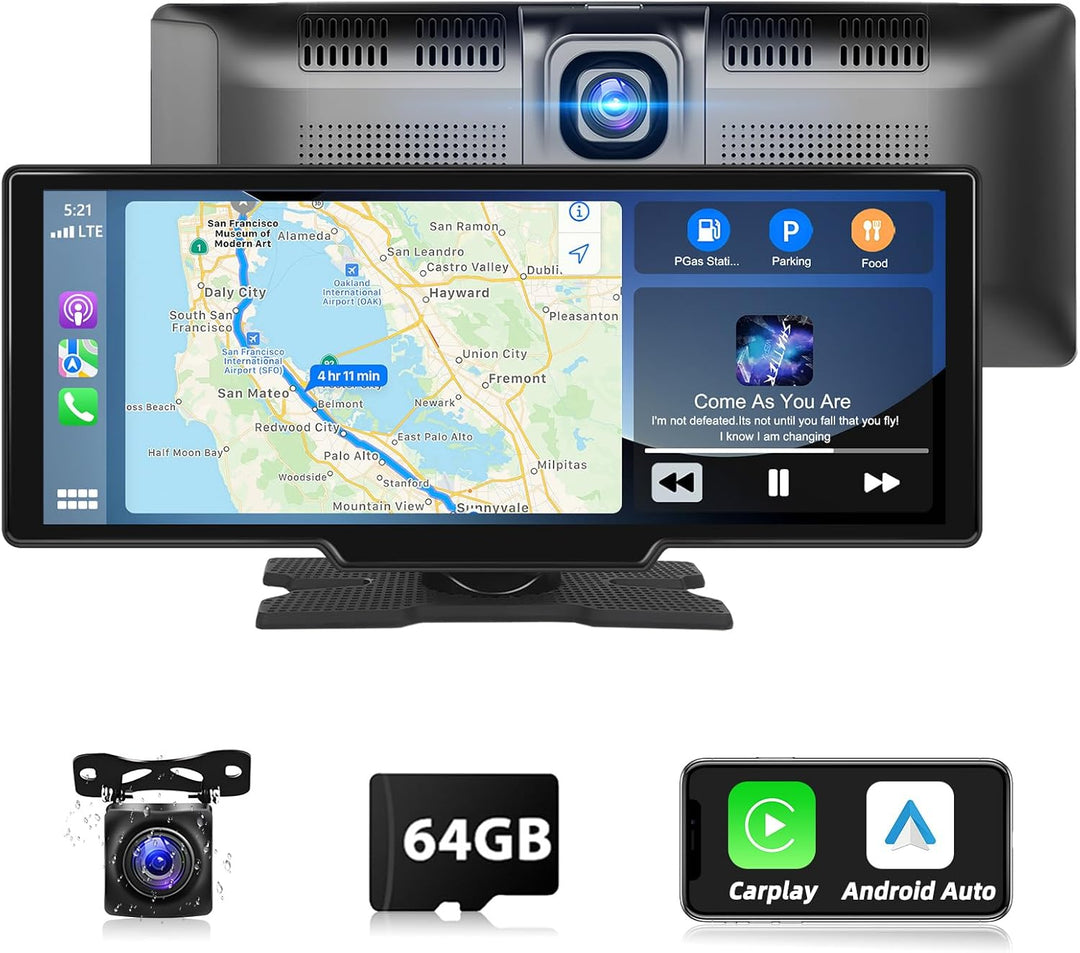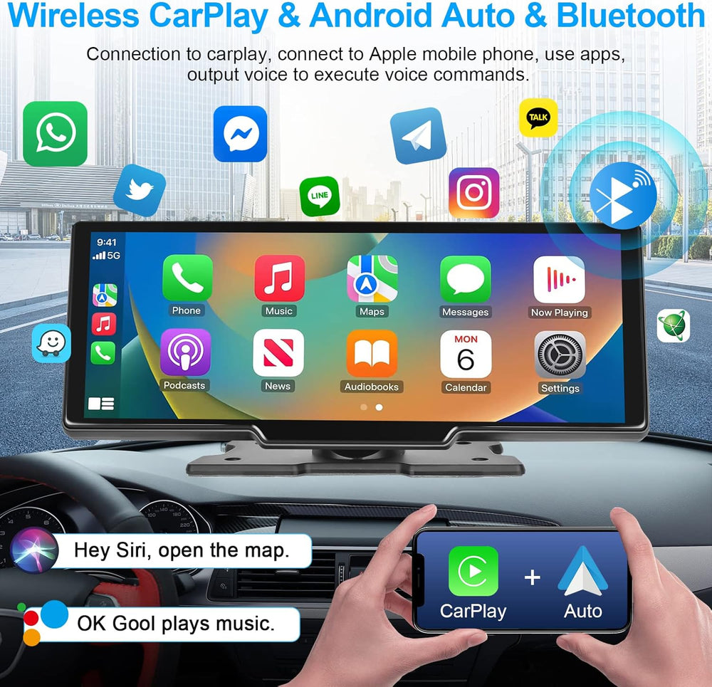 - [Wireless Carplay & Android Auto Unterstützen] - Kompatibel mit Apple Carplay und Android Auto. Nach der drahtlosen Bluetooth-Verbindung kann es kompatibel mit Siri/Maps/Music/Phone verwendet werden.