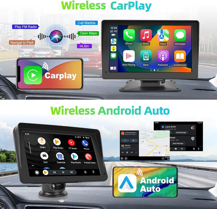 - [Unterstützt Wireless Carplay & Android Auto & Airplay] - Kompatibel mit Apple Carplay und Android Auto. Nach der drahtlosen oder USB-Verbindung kann es mit Siri / Karten / Musik / Telefonanrufkompatibilität verwendet werden. Unterstützt die