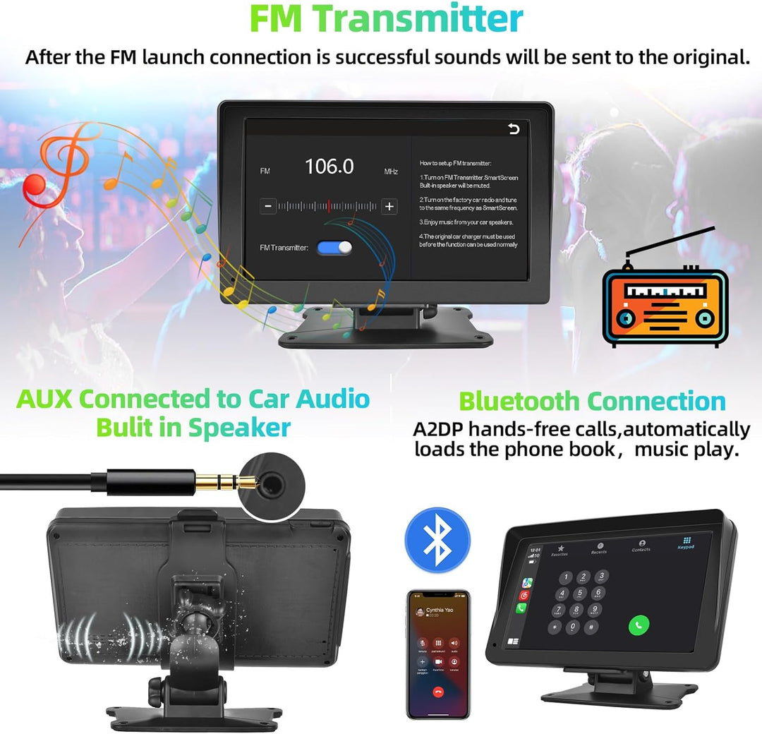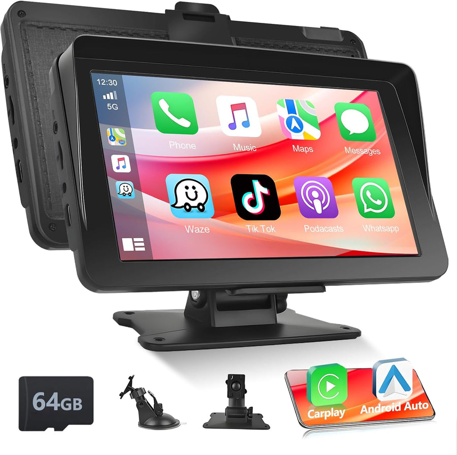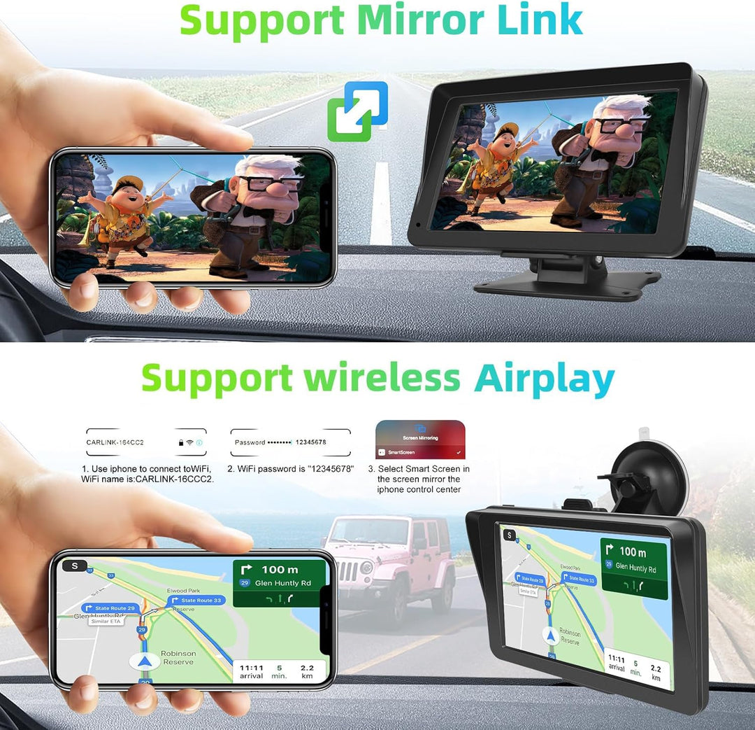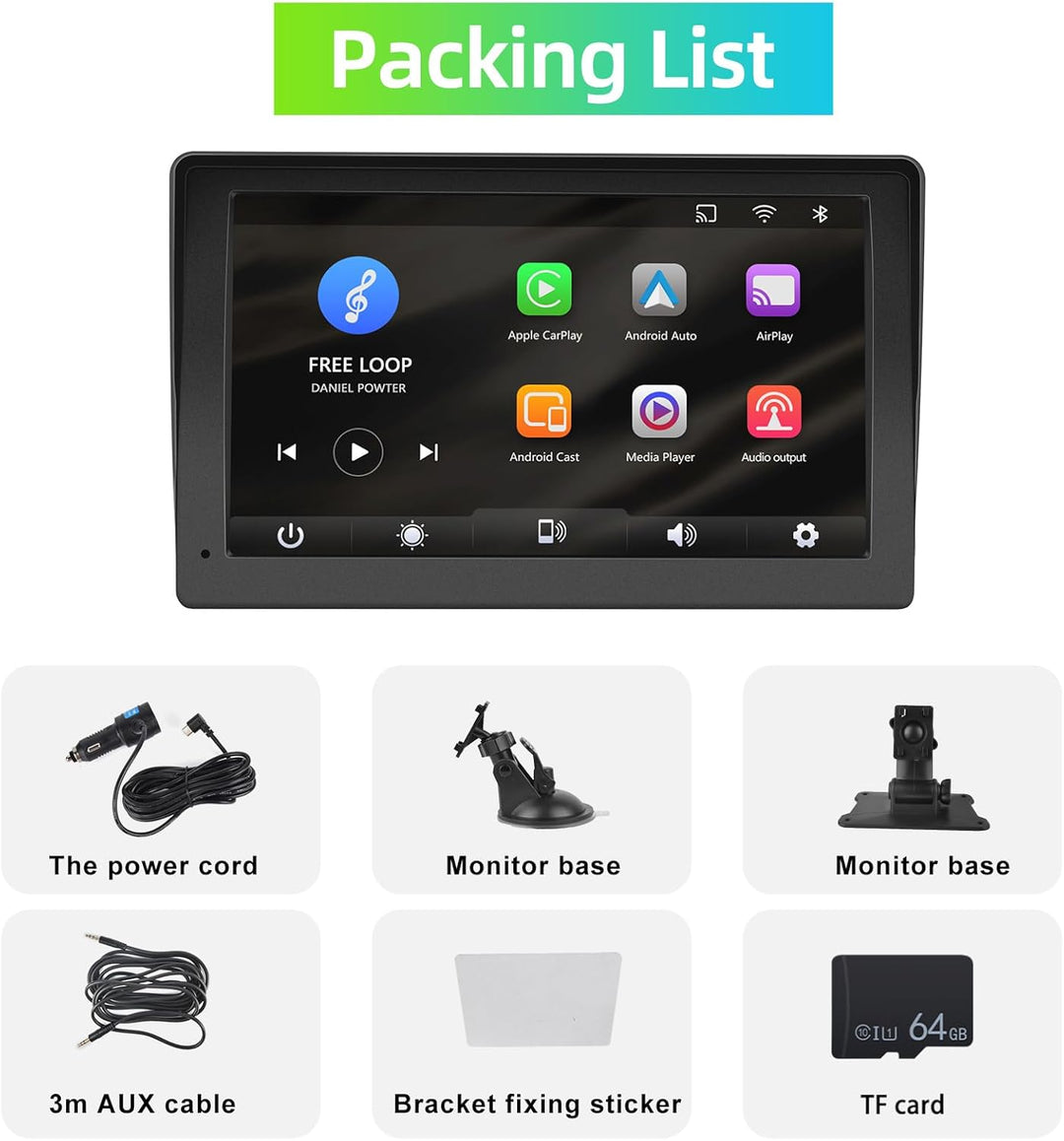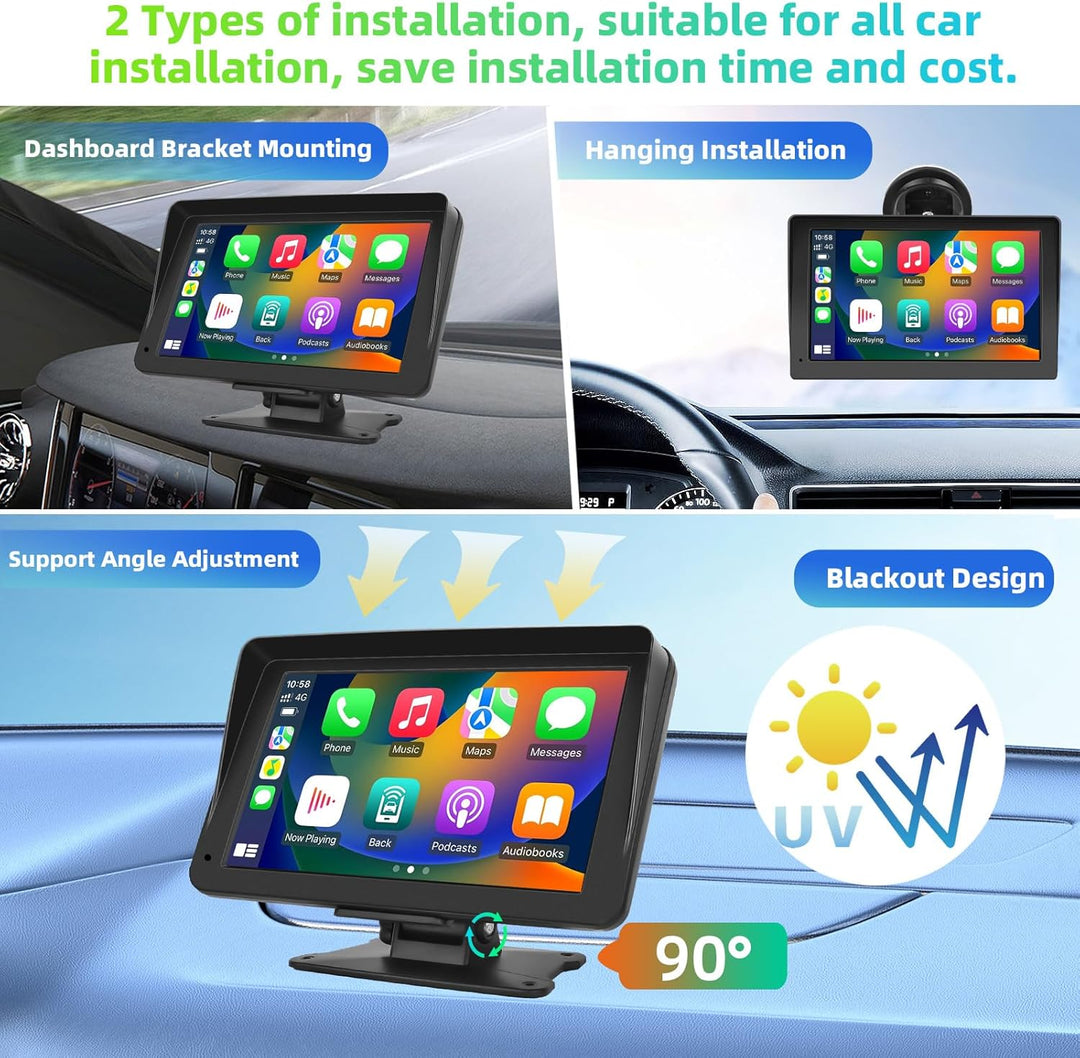 - [Einfache Installation und Kostenersparnis] - Das Kit enthält eine vertikale Halterung und eine Saugnapfhalterung. Das Carplay 7-Zoll-Radio kann mit der vertikalen Halterung auf Ihrem Armaturenbrett oder mit einem starken Saugnapf an der