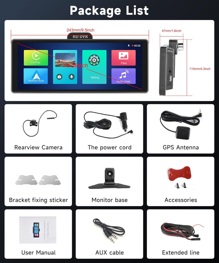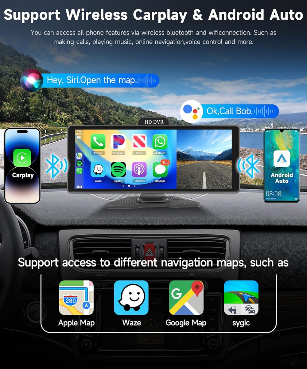 - 【Wireless carplay/Wireless android auto】Geniessen Sie die drahtlose Verbindung zu CarPlay und Android Auto ohne USB-Kabel, was es einfacher macht, Karten zu verwenden, Musik zu hören, zu telefonieren und Nachrichten zu senden und zu hören, während