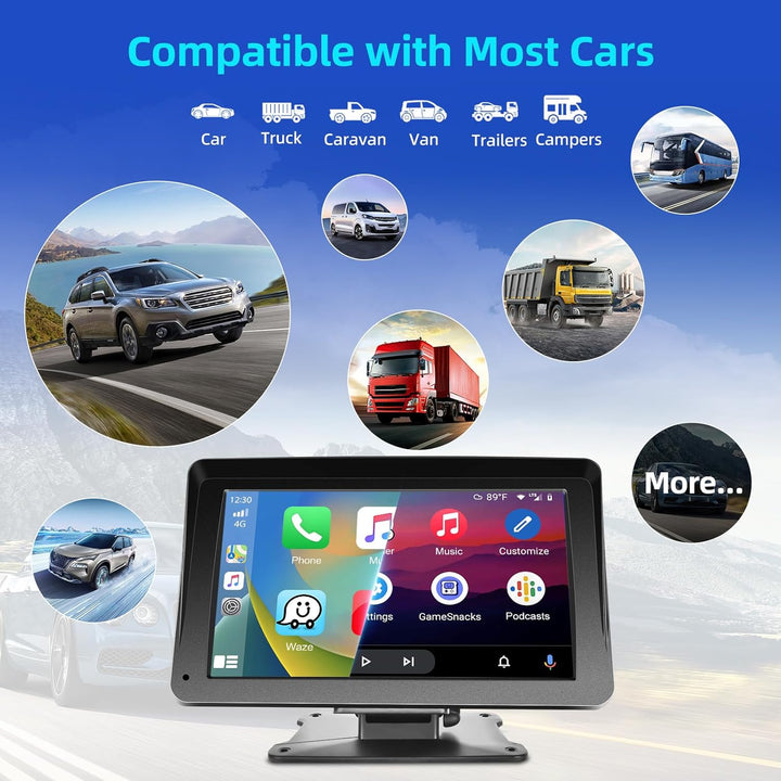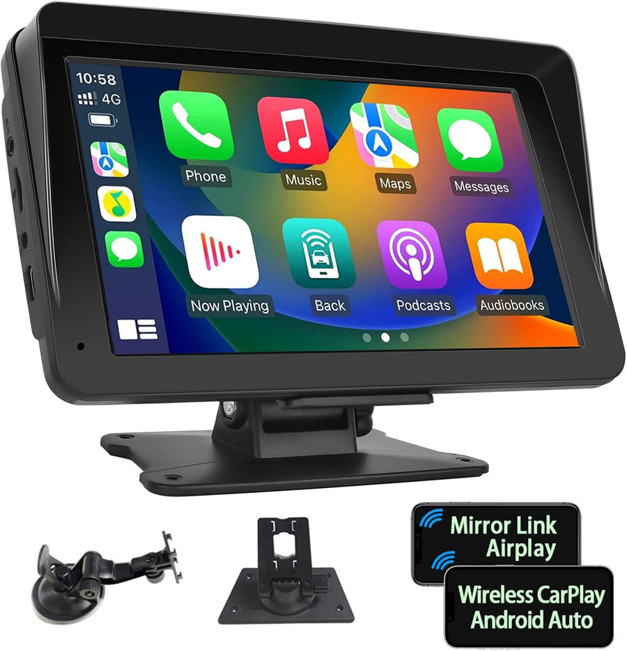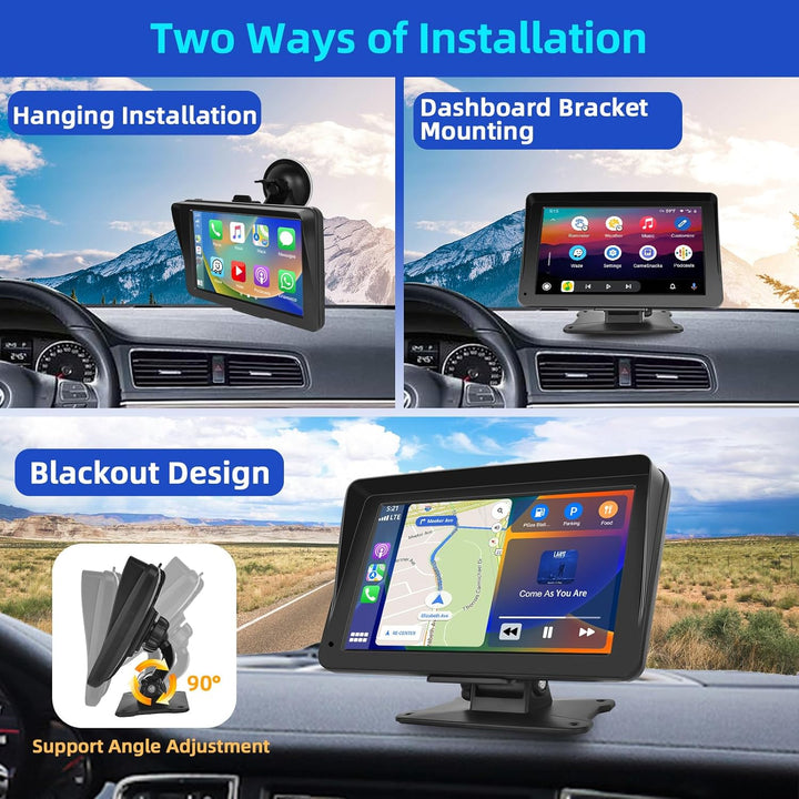 - 🚗[Einfache Installation und Kosteneinsparung] - Das Kit enthält eine vertikale Halterung und eine Saugnapfhalterung. Das Carplay 7-Zoll-Radio kann mit der vertikalen Halterung an Ihrem Armaturenbrett oder mit einem starken Saugnapf an der