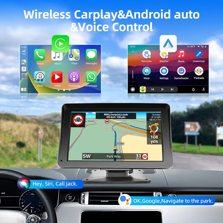 - 🚗[Wireless Carplay & Android Auto & Airplay Unterstützen] - Kompatibel mit Apple Carplay und Android Auto. Nach einer drahtlosen oder USB-Verbindung kann es mit Siri / Maps / Music / Phone Call-Kompatibilität verwendet werden. Unterstützt Apple
