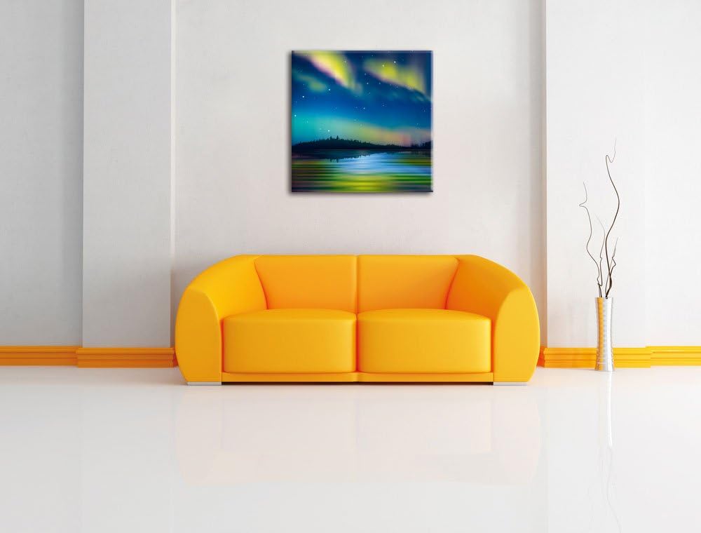 Polarlichter in Alaska, Format: 70x70 auf Leinwand, XXL riesige Bilder fertig gerahmt mit Keilrahmen