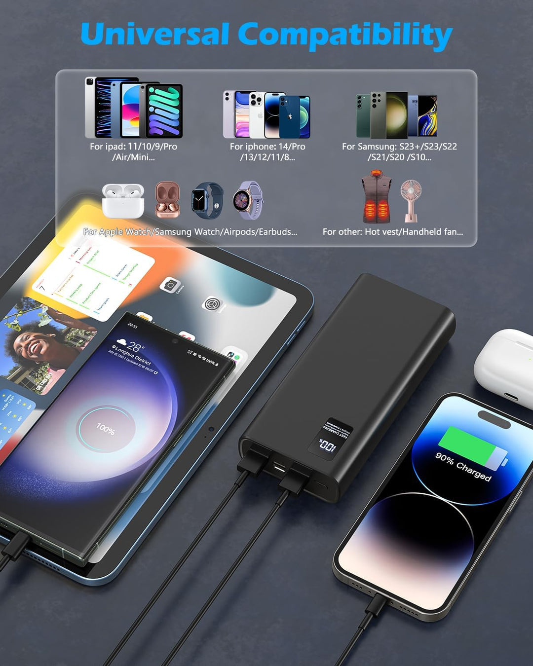 - 【Universelle Kompatibilität Tragbares Ladegerät】Im Gegensatz zu den meisten Powerbanks auf dem Markt, die kein energiesparendes Zubehör aufladen können, funktioniert die tragbare Powerbank nicht nur mit allen Handys und Tablets, sondern auch mit