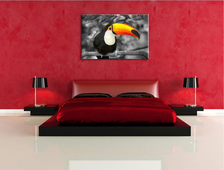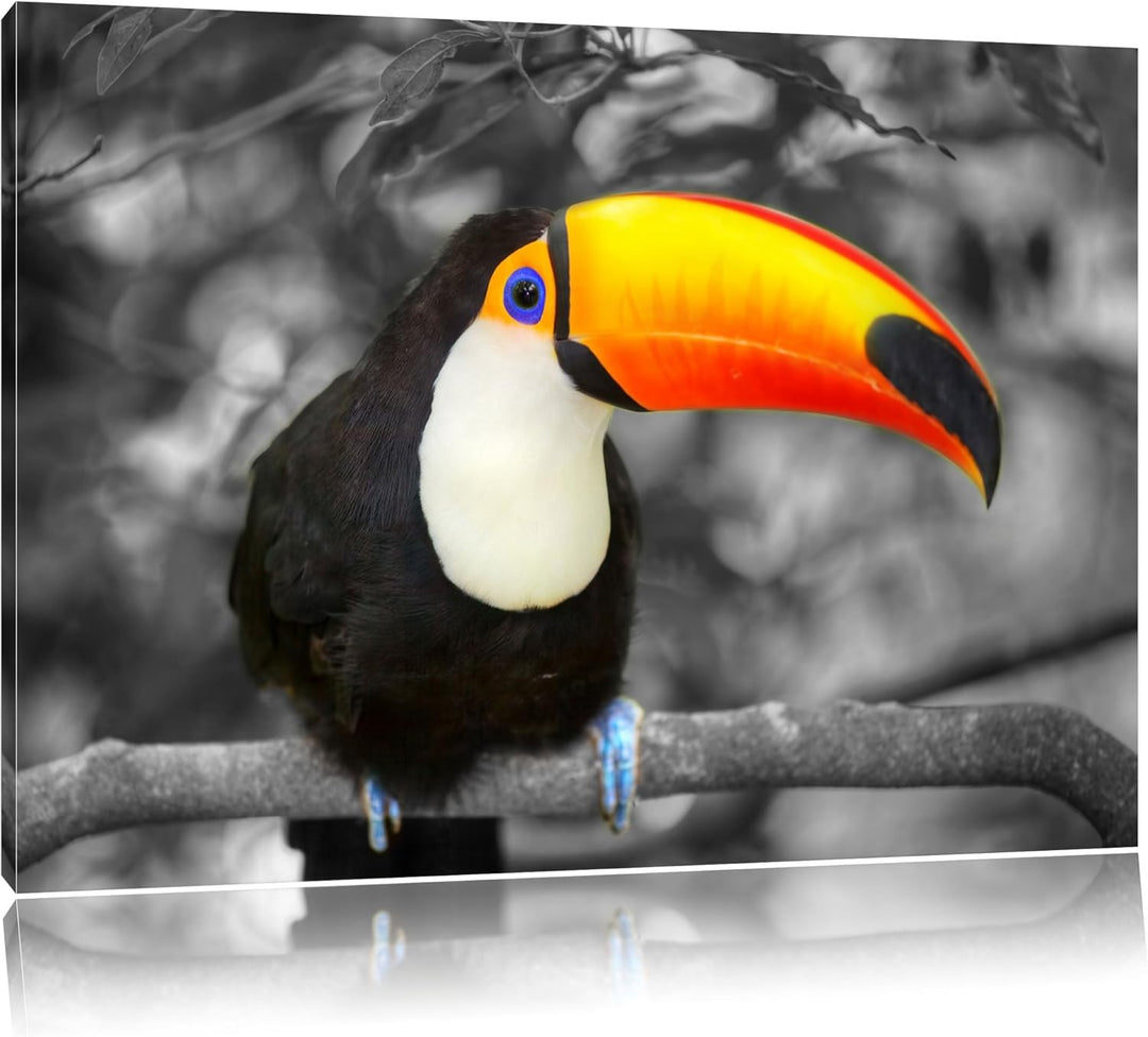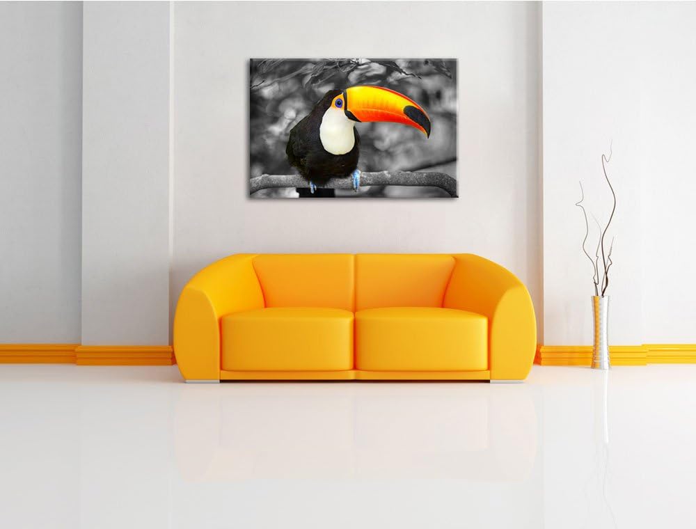 prachtvoller exotischer Tukan schwarz/weiss Format: 100x70 auf Leinwand, XXL riesige Bilder fertig g