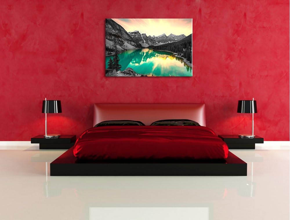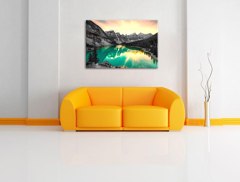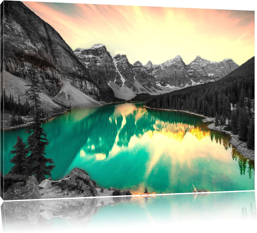 prachtvoller Moraine Lake in Canada schwarz/weiss Format: 100x70 auf Leinwand, XXL riesige Bilder fe