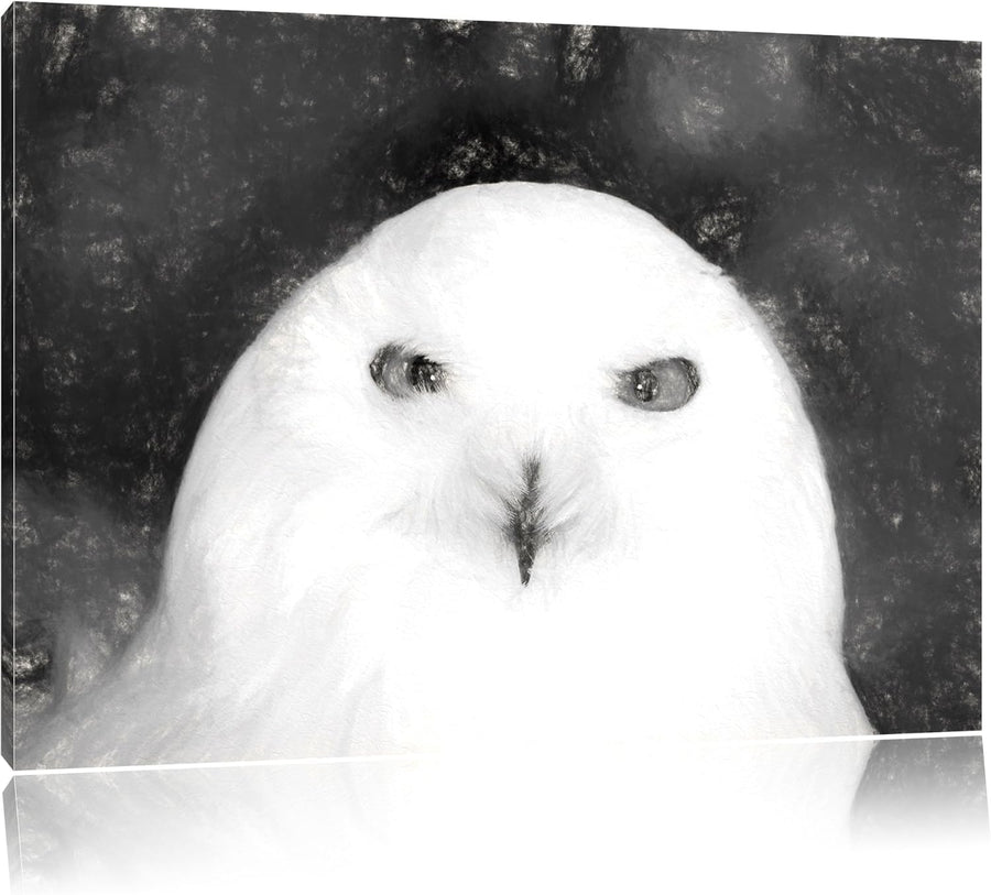 Prächtige schneeweisse Eule als Leinwandbild/Grösse: 100x70 / Wandbild/Kunstdruck/fertig bespannt, 1