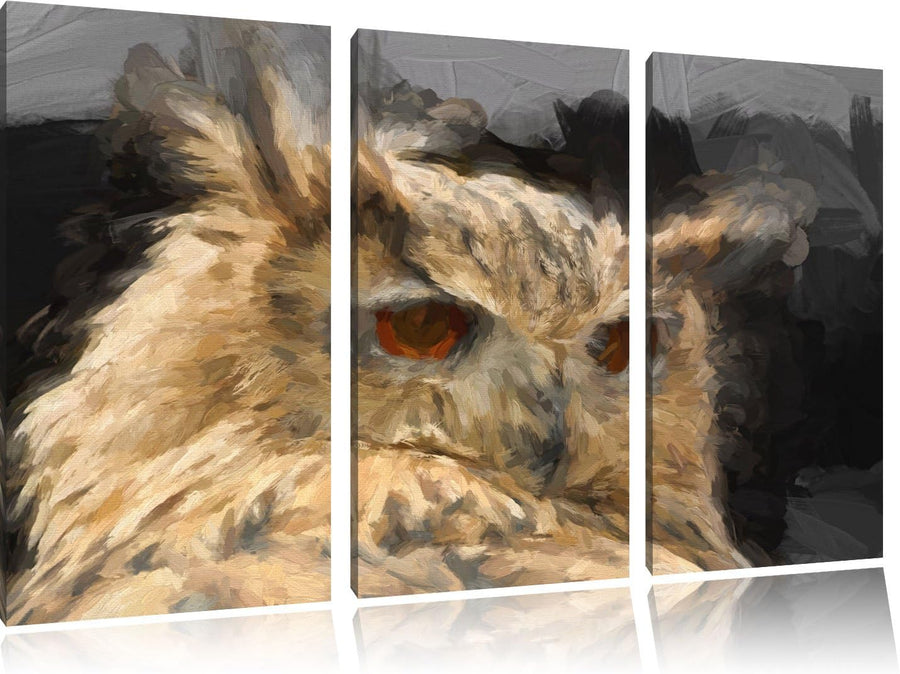 prächtige Waldohreule schwarz/weiss Deluxe 3-Teiler Leinwandbild 120x80 Bild auf Leinwand, XXL riesi