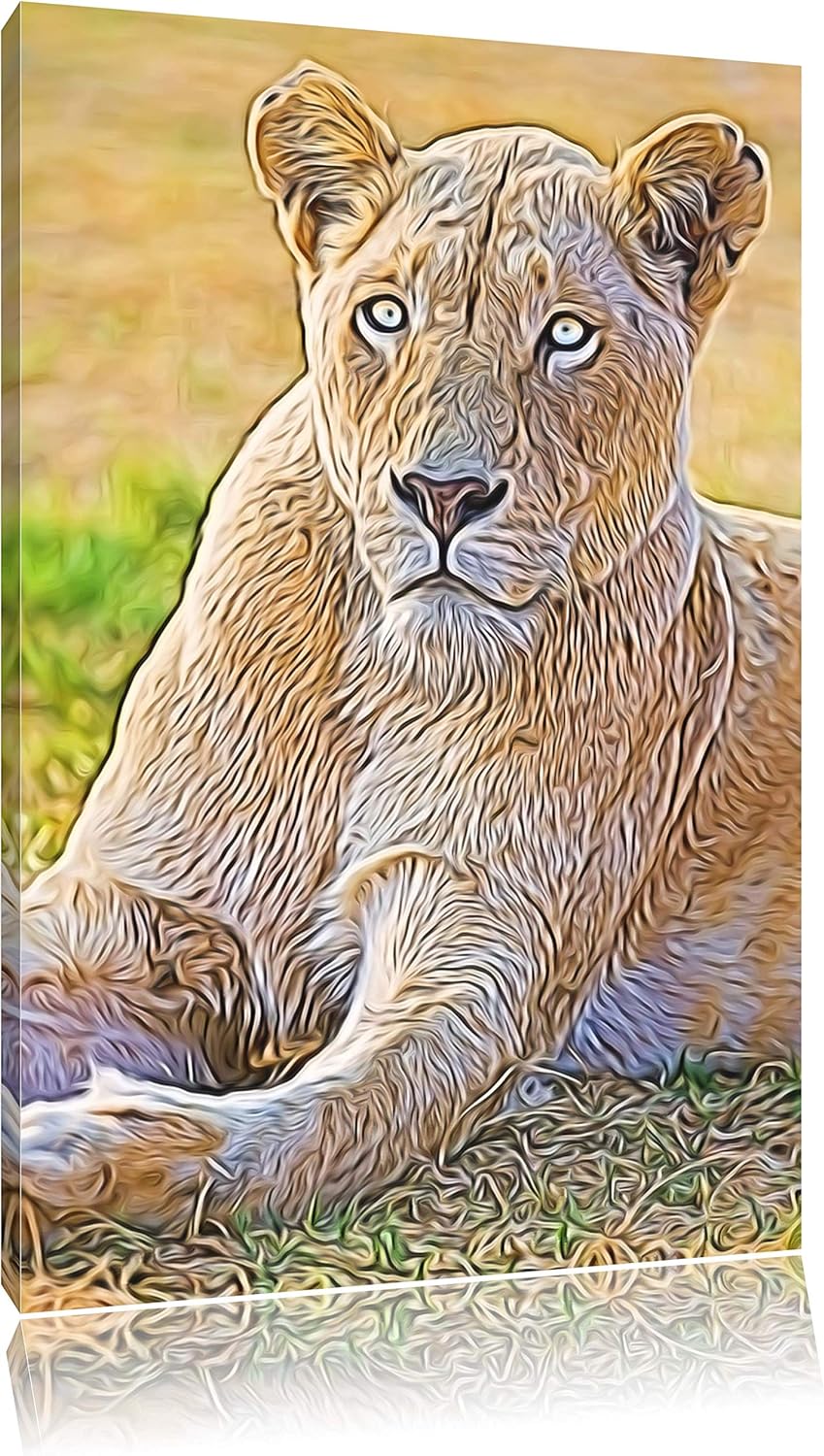 prächtige weisse Löwin Deluxe Format: 100x70 cm auf Leinwand, XXL riesige Bilder fertig gerahmt mit
