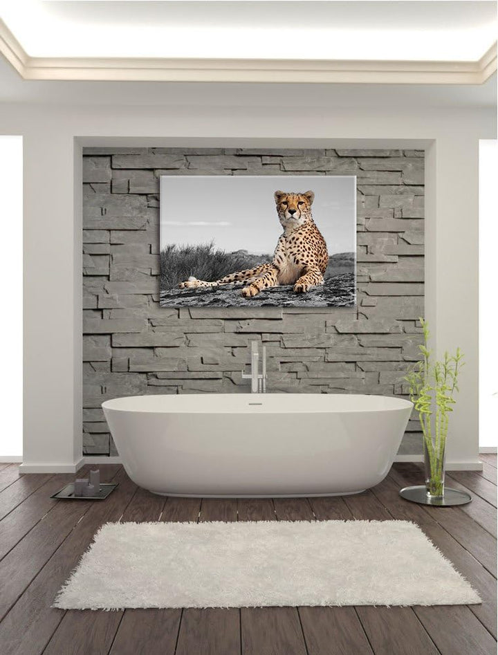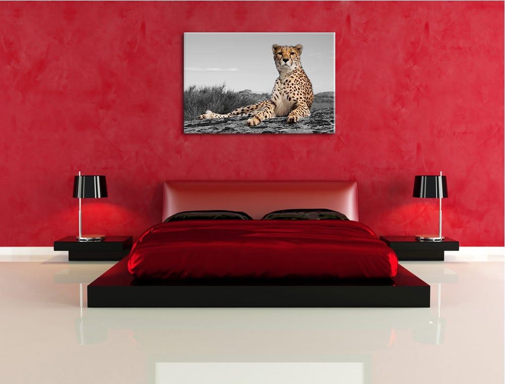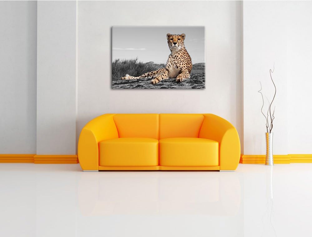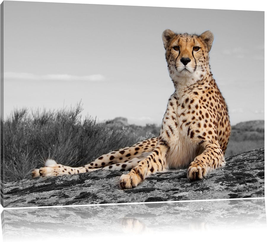 prächtiger Gepard in Savanne schwarz/weiss Format: 100x70 auf Leinwand, XXL riesige Bilder fertig ge