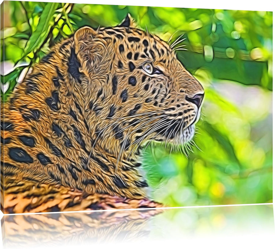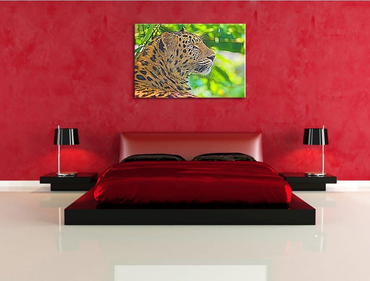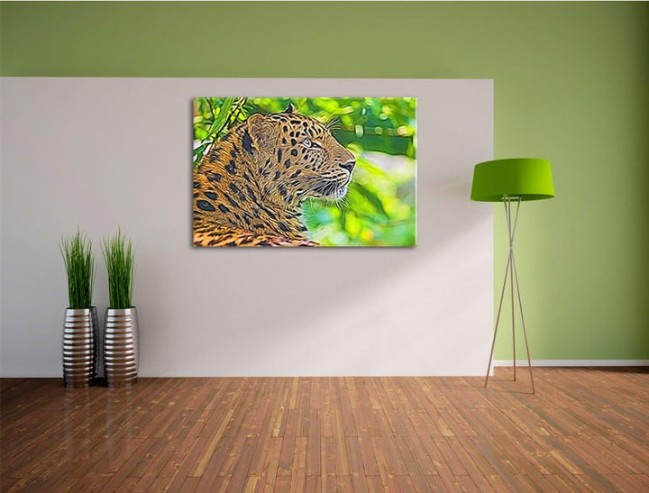 prächtiger Leopard im Schatten Deluxe Format: 100x70 cm auf Leinwand, XXL riesige Bilder fertig gera