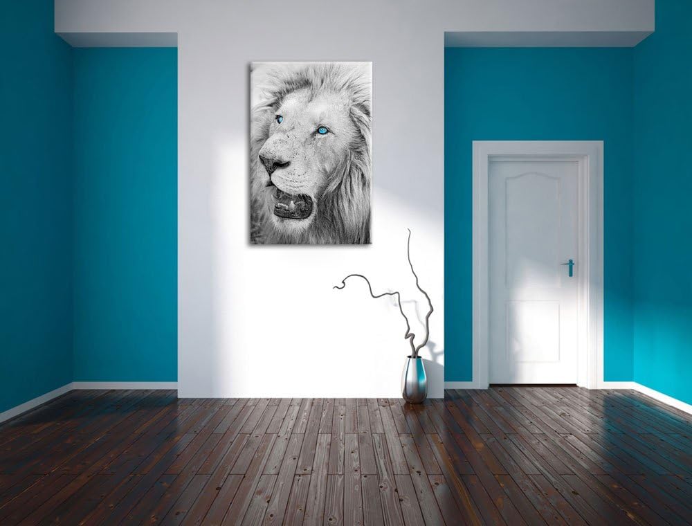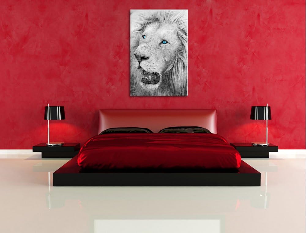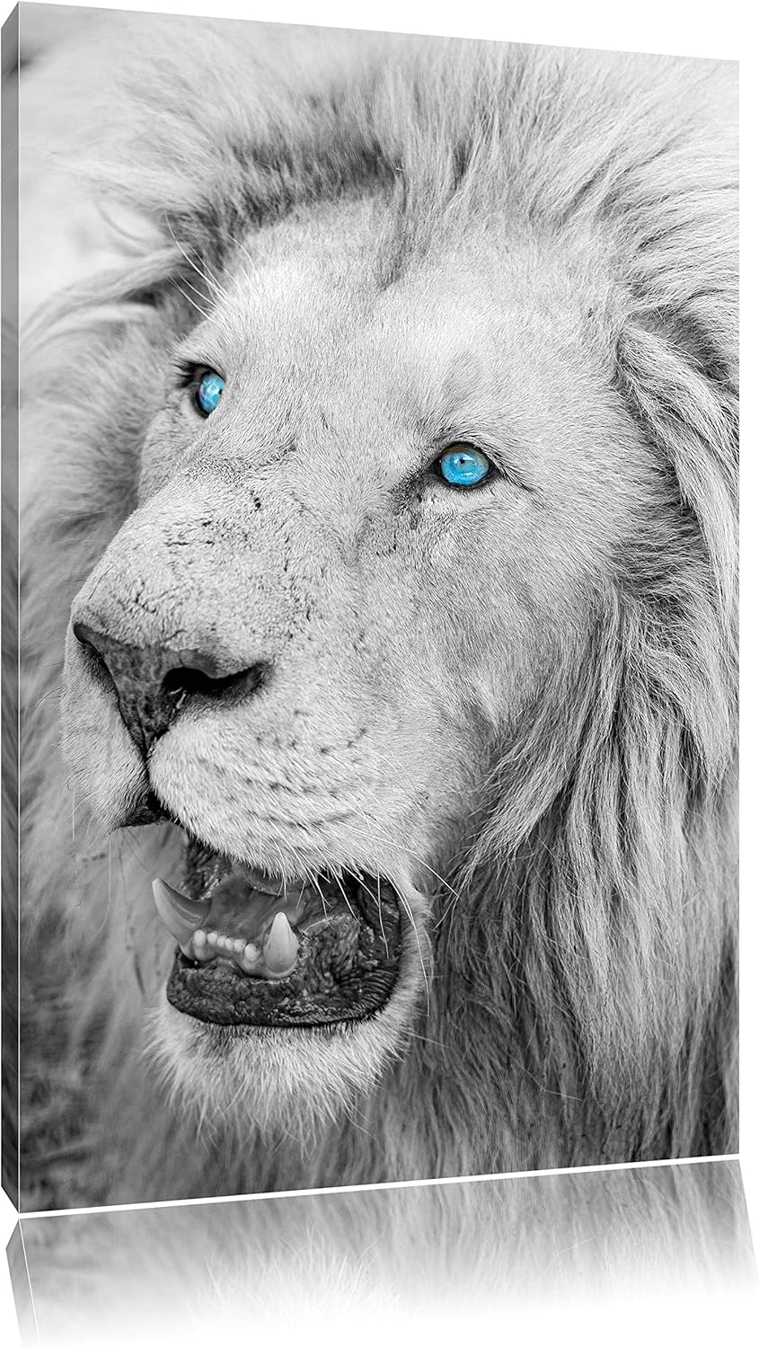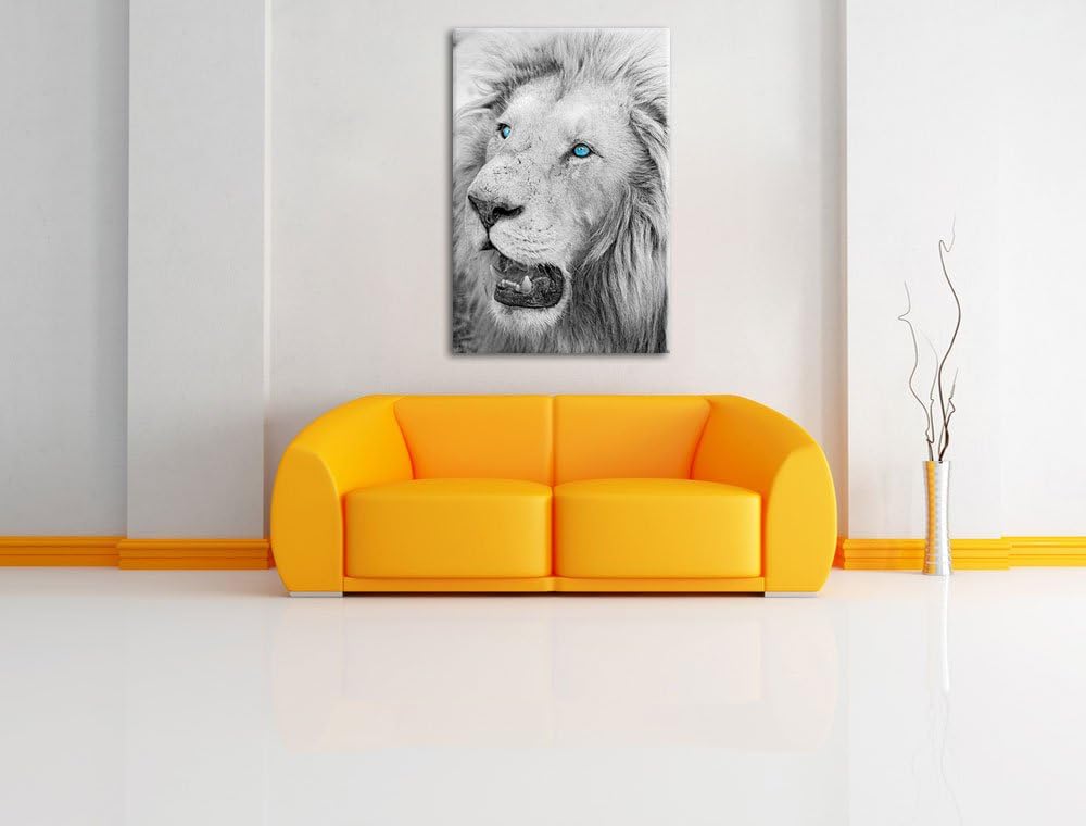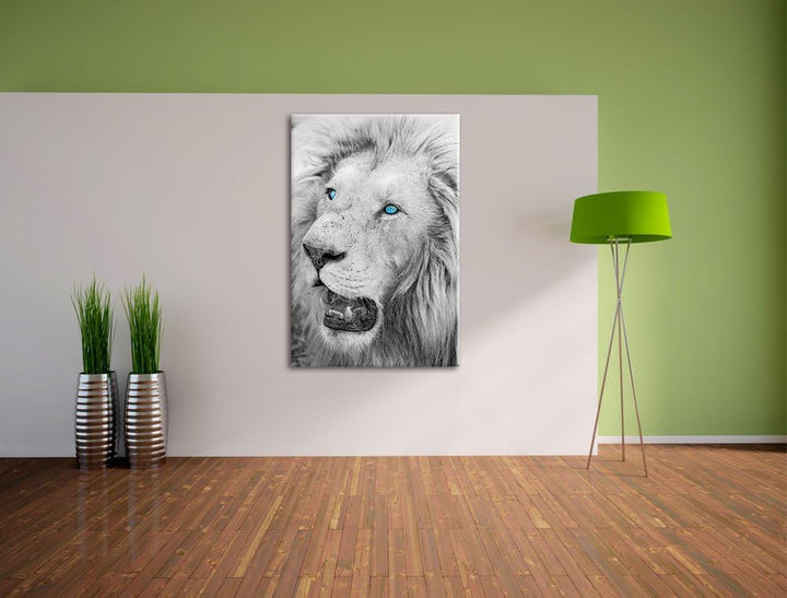 prächtiger weisser Löwe schwarz/weiss auf Leinwand, XXL riesige Bilder fertig gerahmt mit Keilrahmen