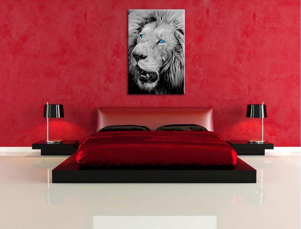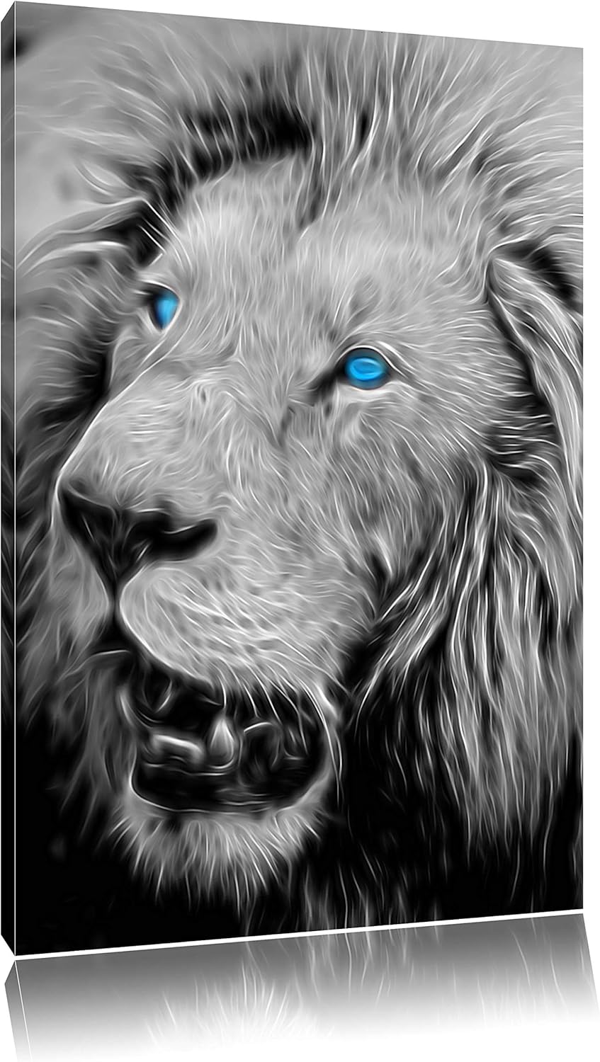 prächtiger weisser Löwe schwarz/weiss Deluxe Format: 100x70 cm auf Leinwand, XXL riesige Bilder fert