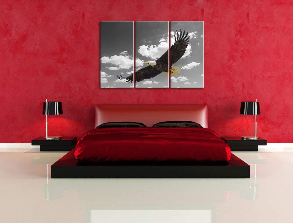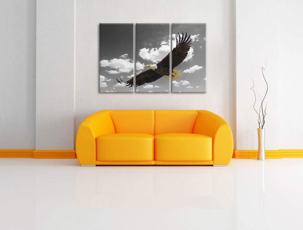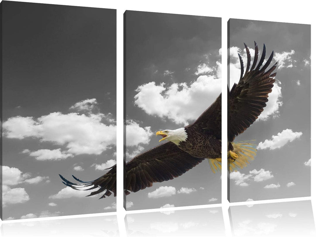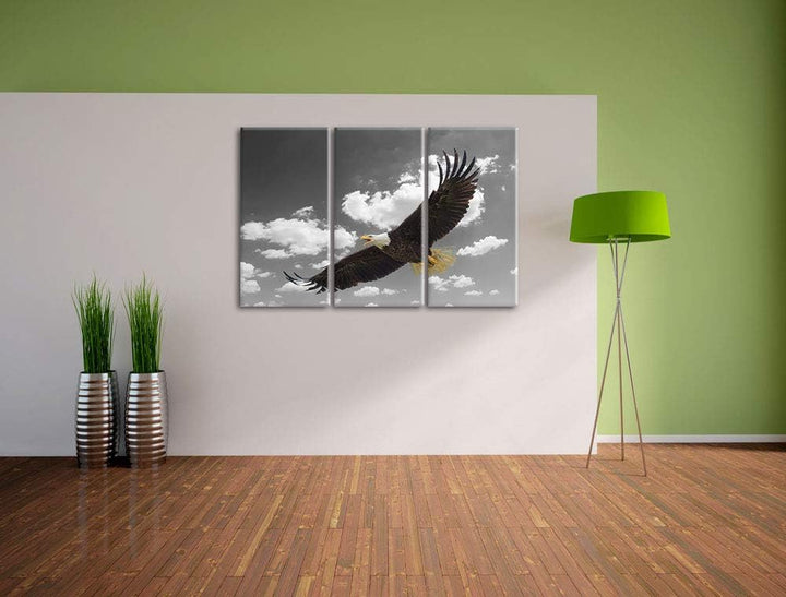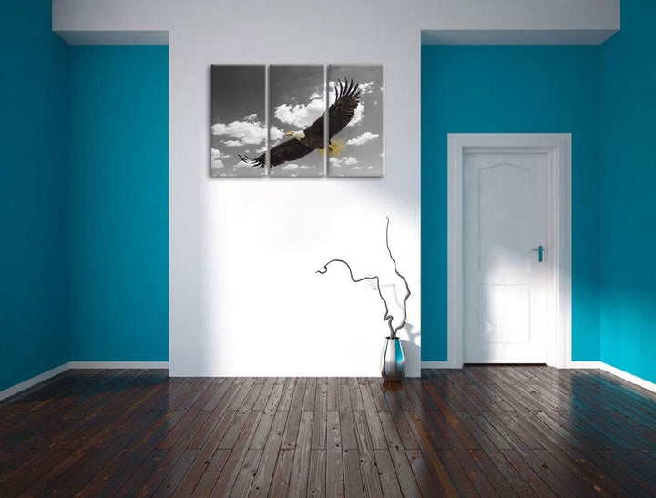 prächtiger Weisskopfseeadler beim fliegen schwarz/weiss 3-Teiler Leinwandbild 120x80 Bild auf Leinwa
