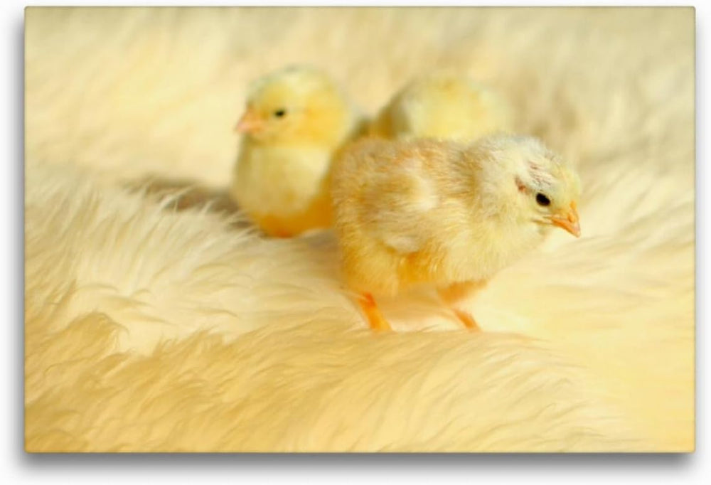 Premium Textil-Leinwand 75 x 50 cm Quer-Format Drei niedliche Küken | Wandbild, HD-Bild auf Keilrahm