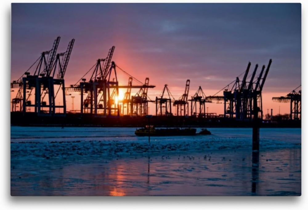 Premium Textil-Leinwand 75 x 50 cm Quer-Format Kräne im Sonnenuntergang | Wandbild, HD-Bild auf Keil