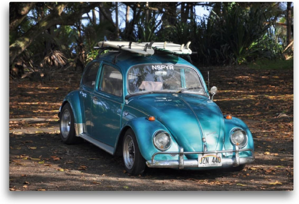 Premium Textil-Leinwand 75 x 50 cm Quer-Format VW Käfer, Hawaii | Wandbild, HD-Bild auf Keilrahmen,