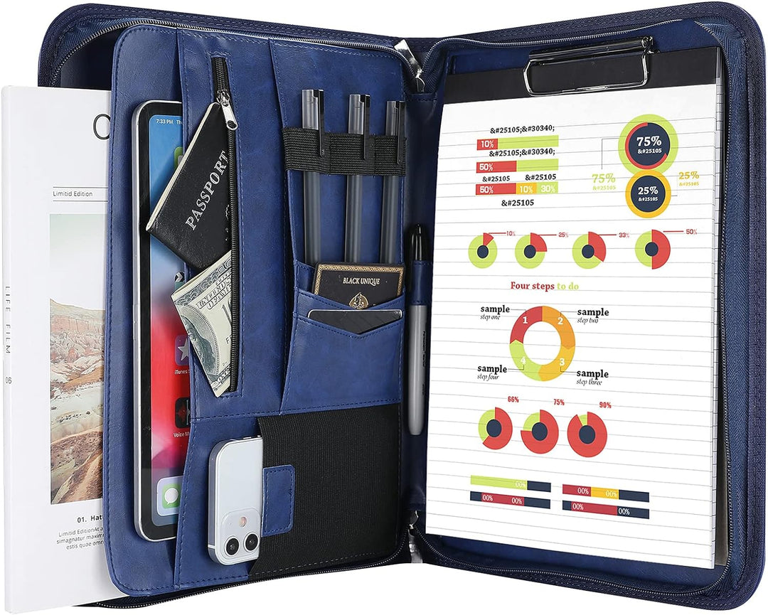 - 📂 Genug Stauraum: Separater Notizblock mit Schreibpapieren, Fächern für Karten, Stifte, offene Tasche für Tablets bis 13 Zoll, Reissverschlusstasche für geheime Dokumente