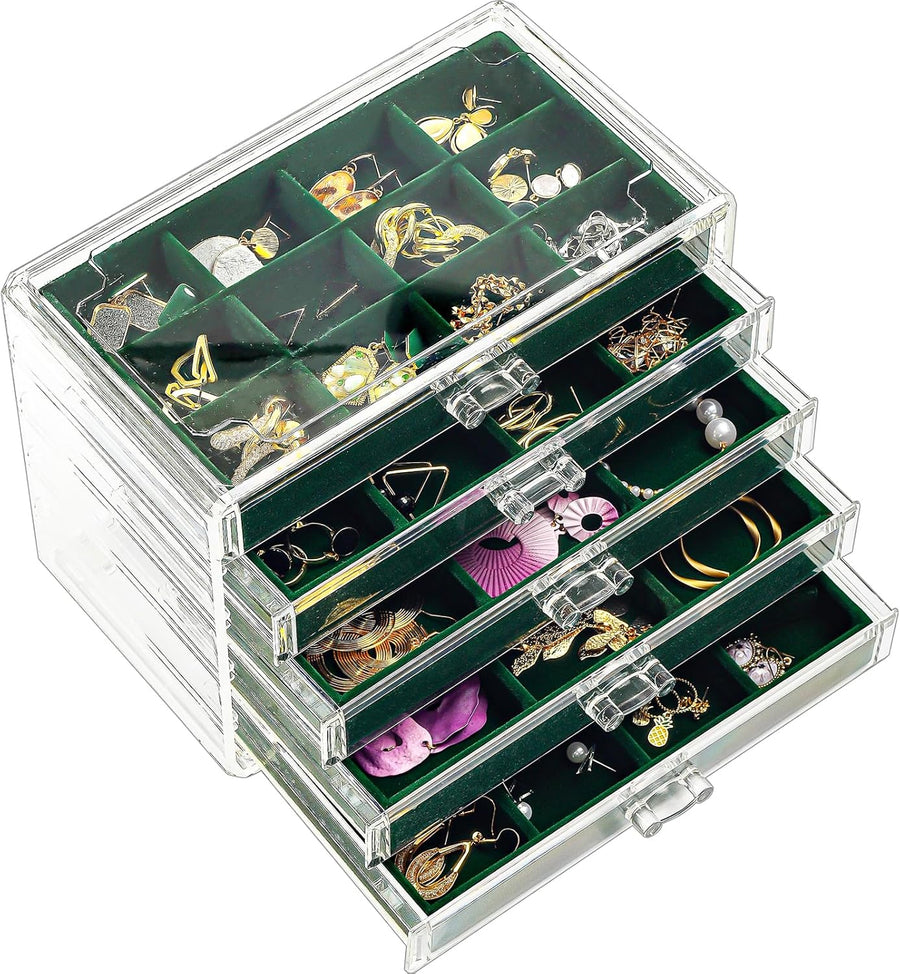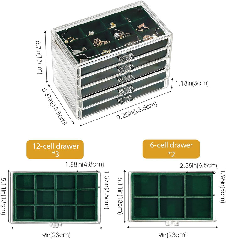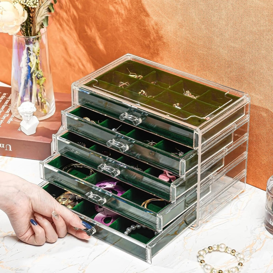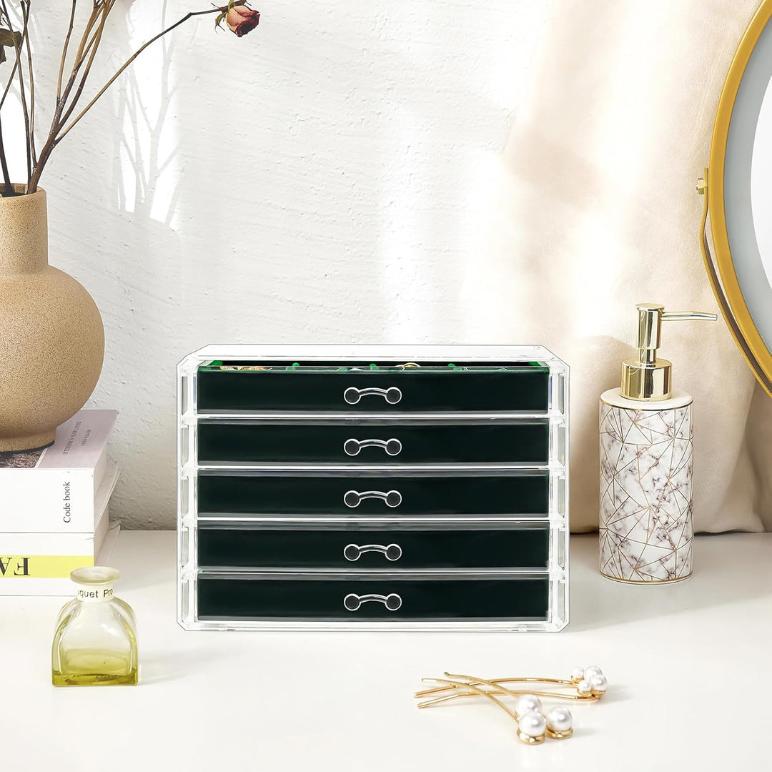 - ✅ 5 herausnehmbare Fächer aus Samt - 5 Schubladen lassen sich mit leicht zu greifenden Griffen herausziehen. Die Samtfächer auf jeder Ebene können von den Schubladen abgetrennt und zum Organisieren anderer grösserer Gegenstände verwendet werden
