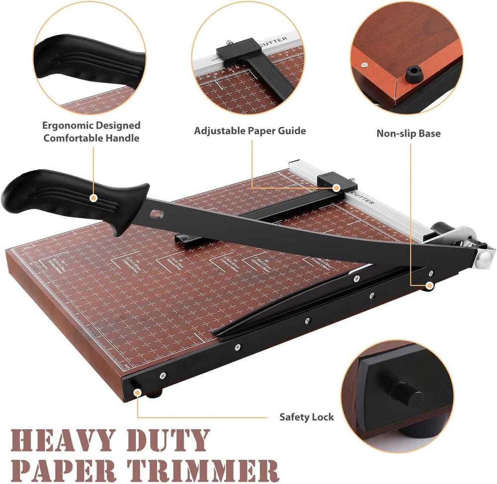 - Gute Material: Hebelmesser aus hochwertigem Stahl und Griff der Guillotine sorgen für ein optimales Schnittergebnis. Nützliches Raster mit Formatlinien auf dem Schneidebrett für passgenaue Zuschnitte