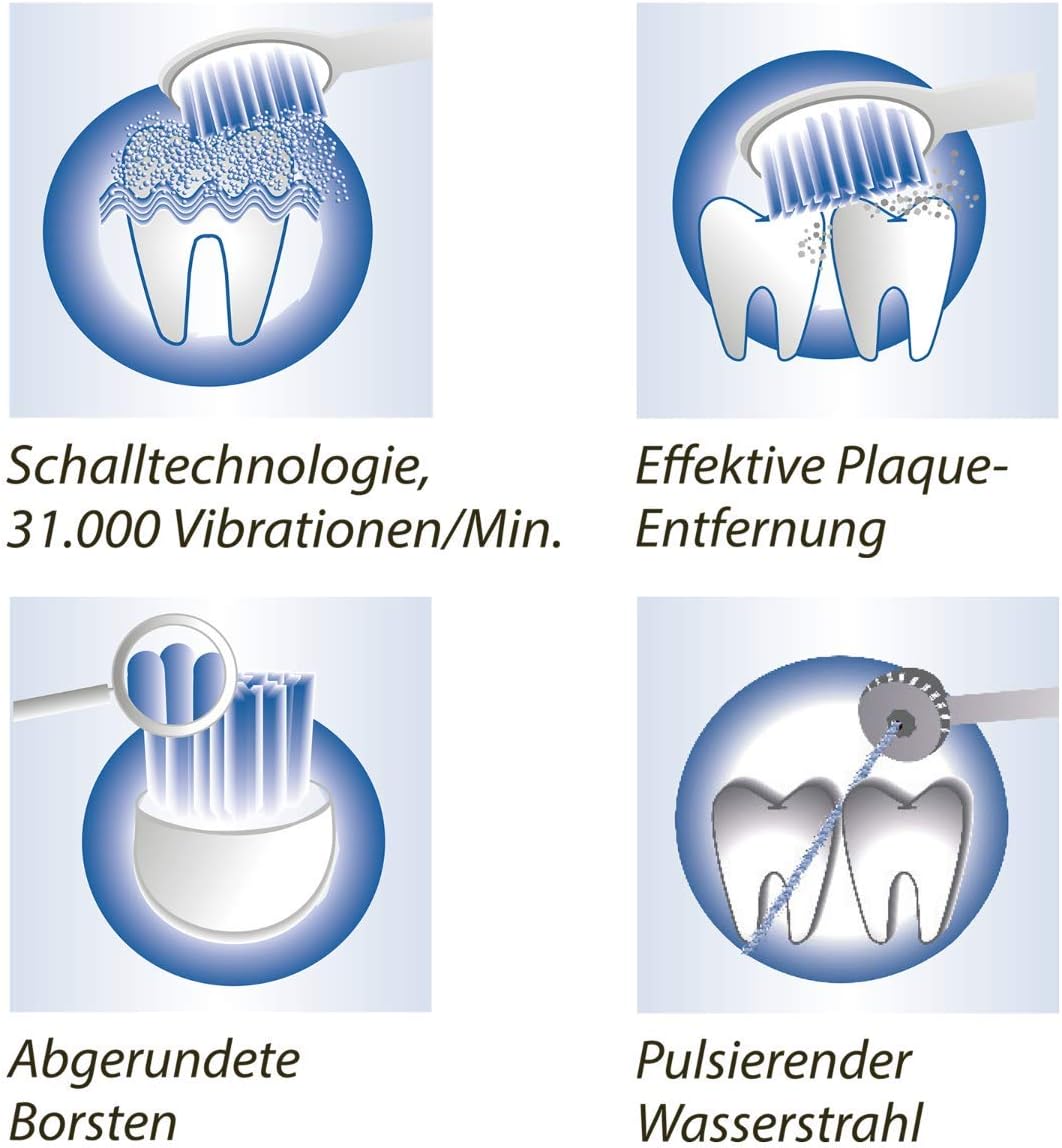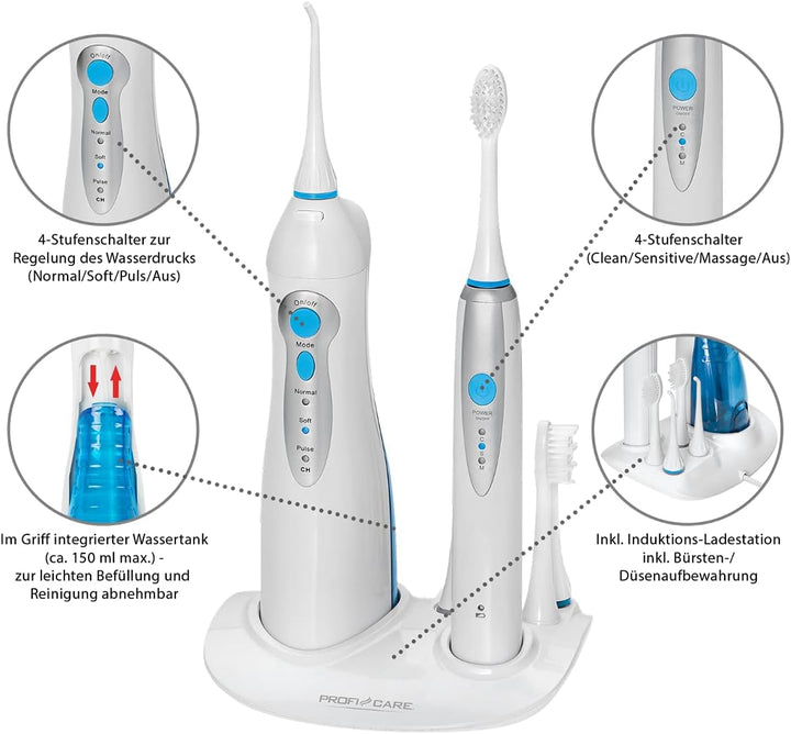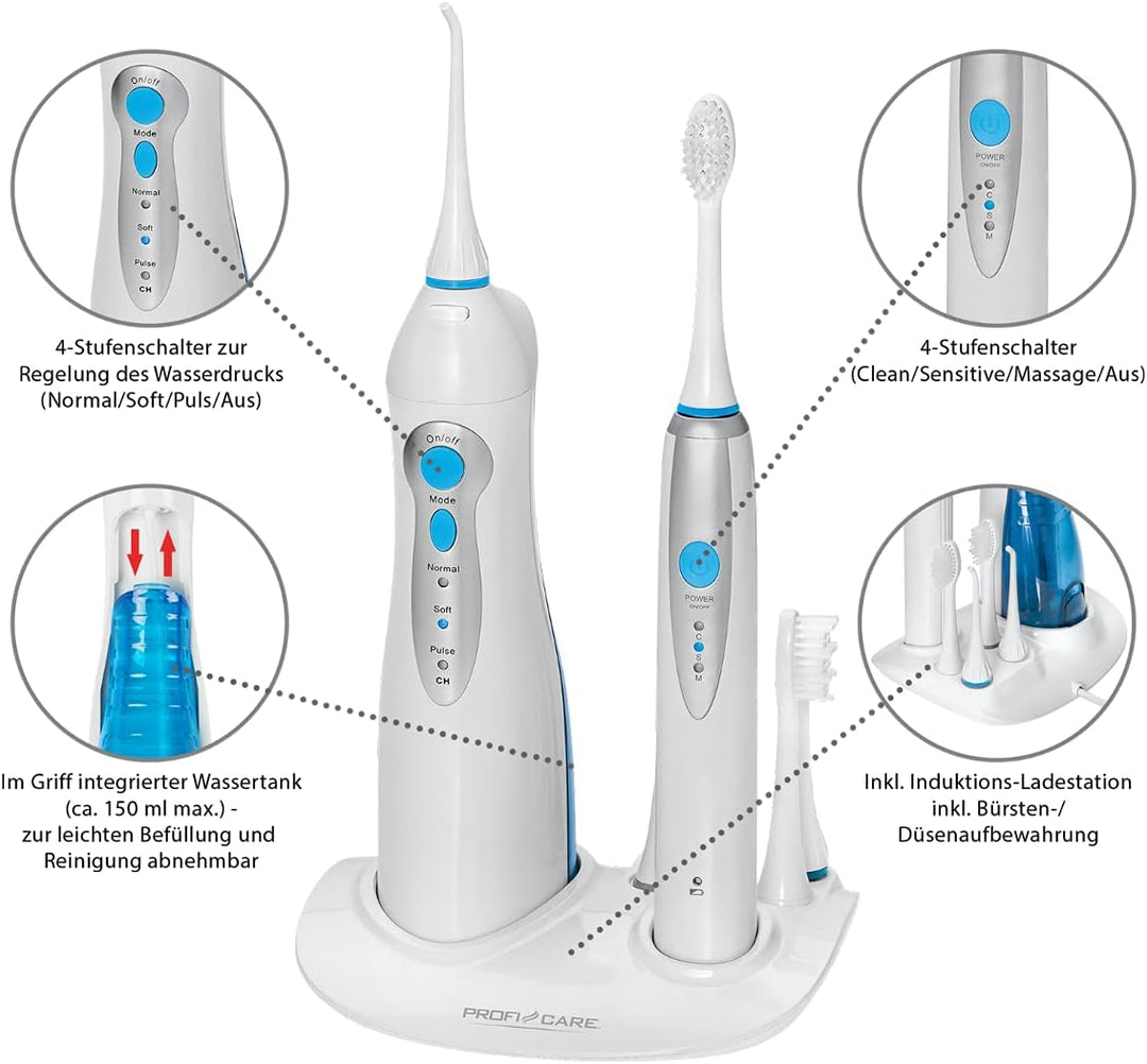 - Erhalten Sie gesündere, gepflegte Zähne und ein schönes, strahlendes Lächeln mit der 2in1 Akku-Schallzahnbürste und -Munddusche von ProfiCare